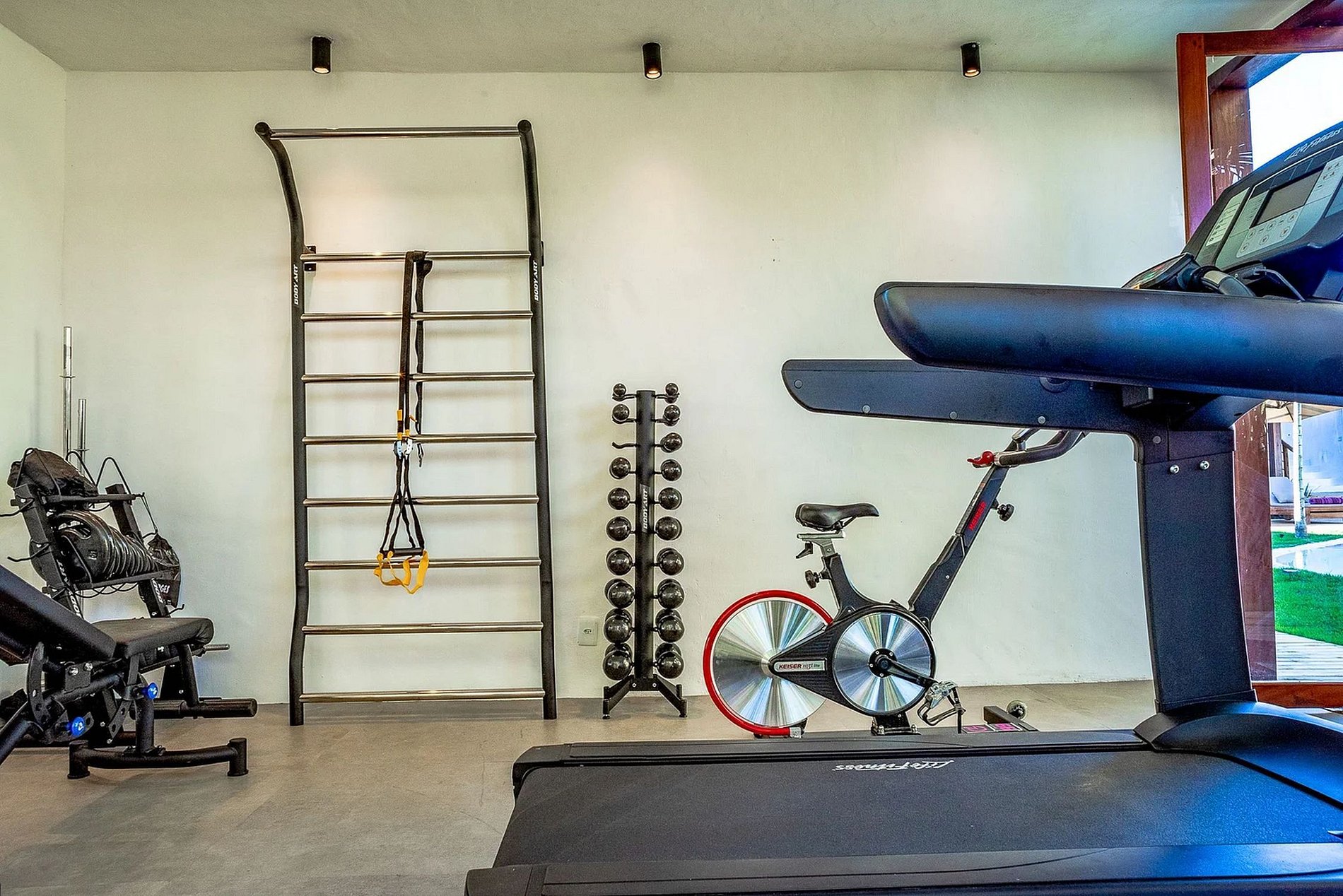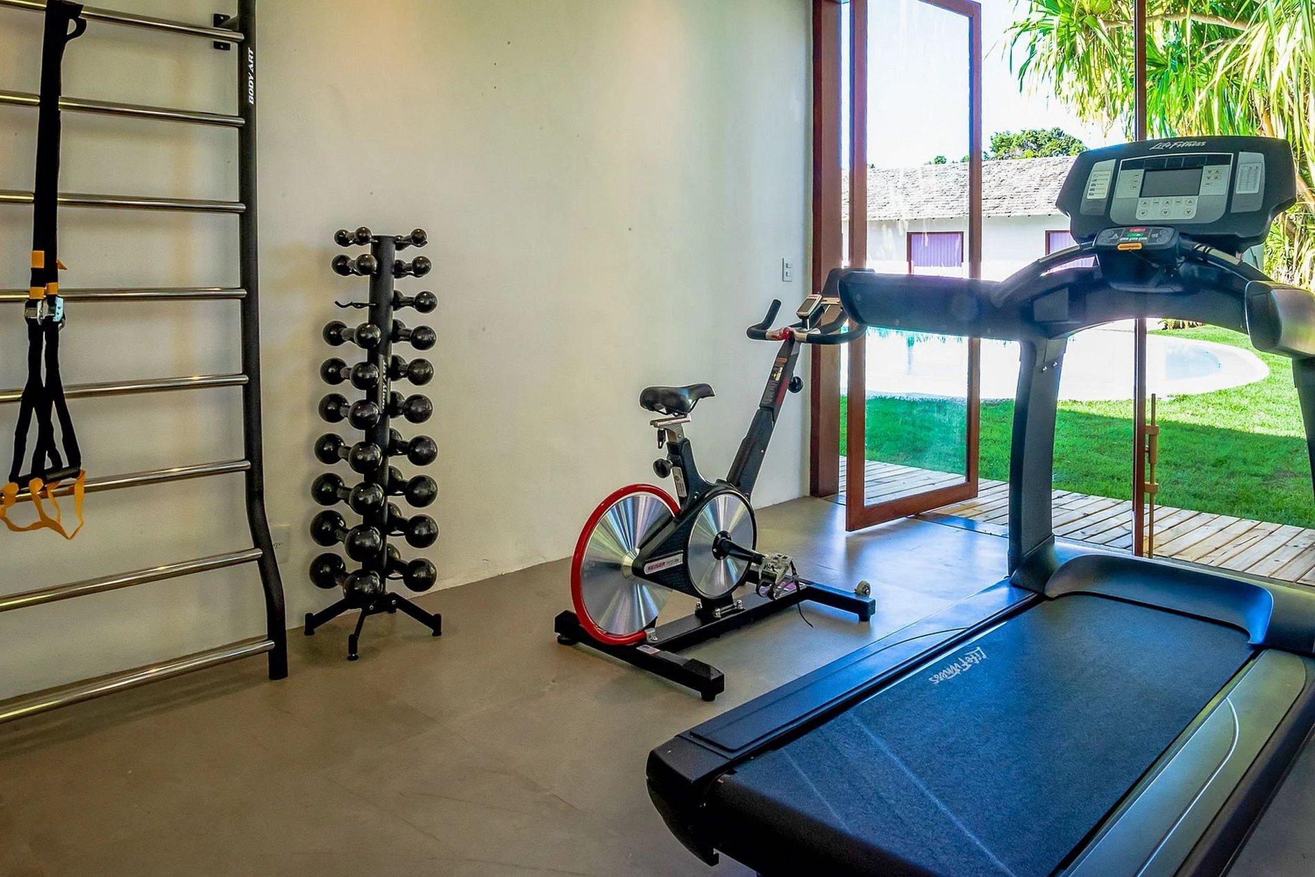 Additional amenities that elevate the guest experience include Trussardi pool and beach towels, Wi-Fi throughout the house, a well-equipped gym with treadmill, spin bike, back extension, TRX rope, adjustable bench, and steam sauna."