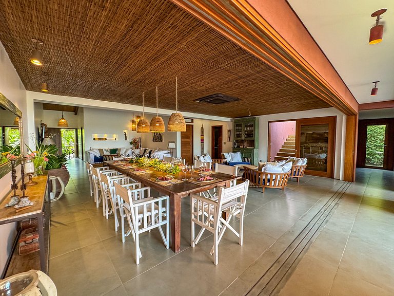 Gorgeous residence with ocean panoramas situated in a prestigious gated community in Trancoso, featuring an outdoor pool and 6 cozy bedrooms.