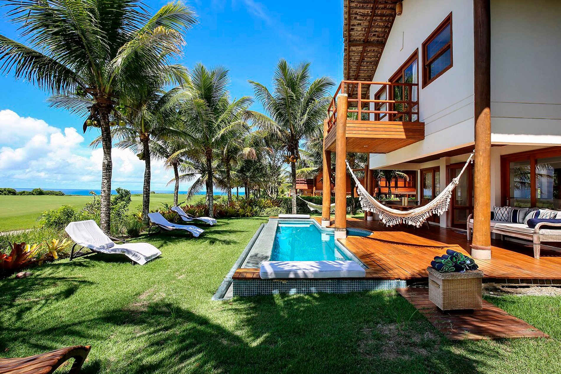 This spectacular house is located in Terravista, a high-end condominium offering stunning views of the golf course and the sea. The property features four comfortable suites, each with a private balcony and sea view, air conditioning, and mosquito nets. The common areas include a living room, TV room, and a fully equipped kitchen, providing all the necessary comfort for a pleasant stay.