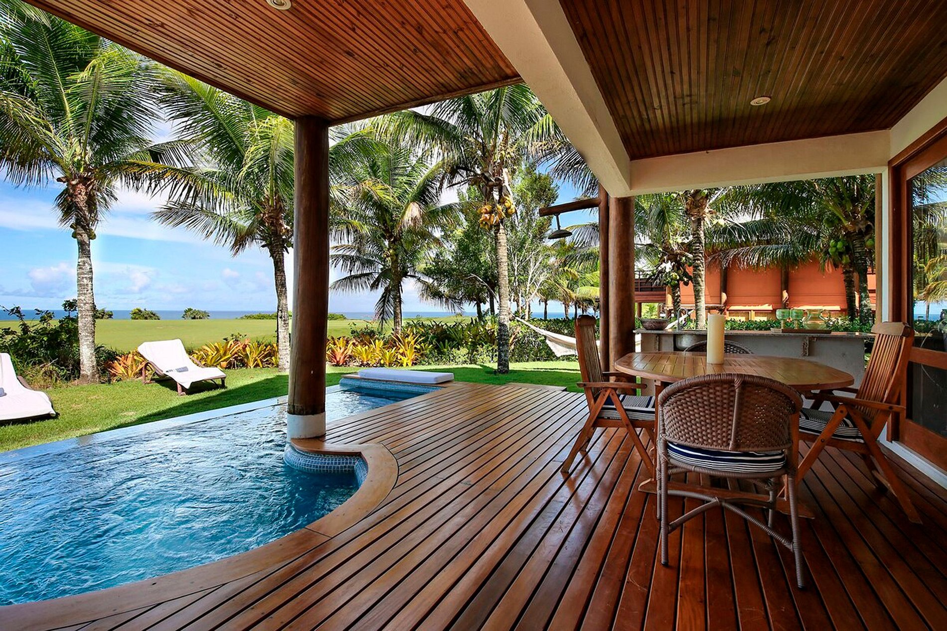 The daily cleaning service is performed by the service team and is included in the rental price. Other additional conveniences include maid's quarters, washer and dryer, beach towels, and a 24-hour security concierge, providing a worry-free and tranquil experience. The condominium's location is another highlight, situated just 5 km from Trancoso, providing a unique experience in the region with its rich natural beauty and leisure options. Recently, a French restaurant, "Le Restaurant - Terravista," was opened within the condominium, offering high-quality dining options.