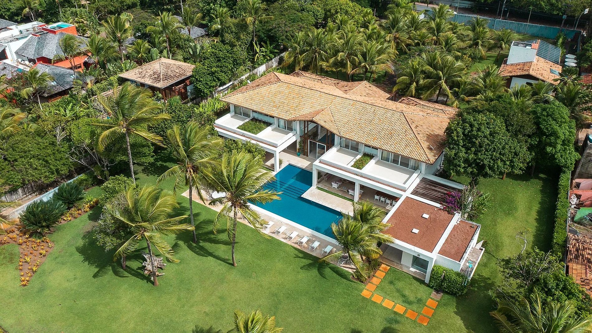 This residence stands out as an exclusive dwelling, situated along the Balsa Road in Arraial d'Ajuda, boasting an expansive 5000 m² area. Nestled seamlessly amidst natural pools and a serene inlet suitable for leisurely swims.