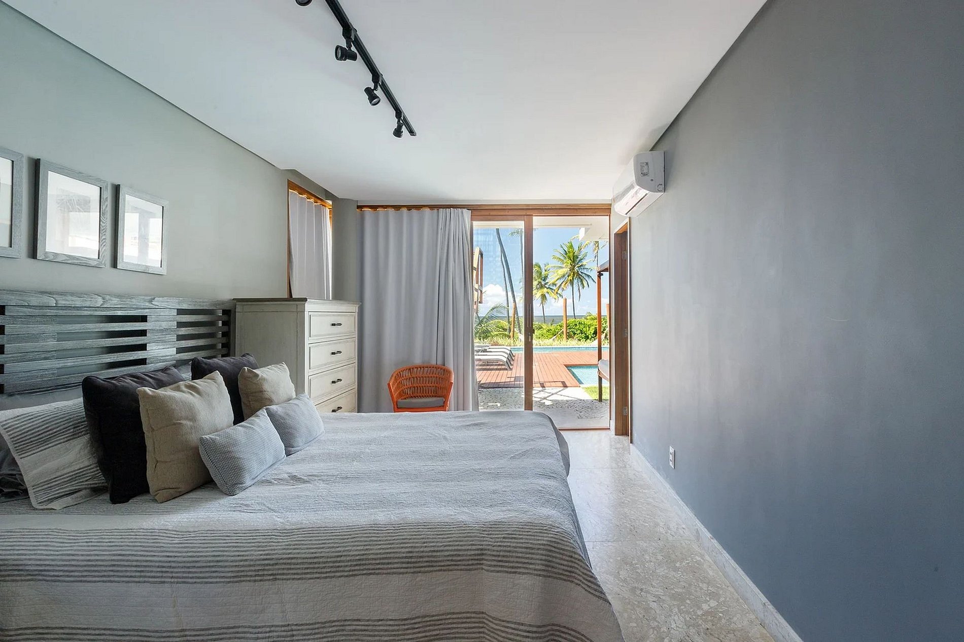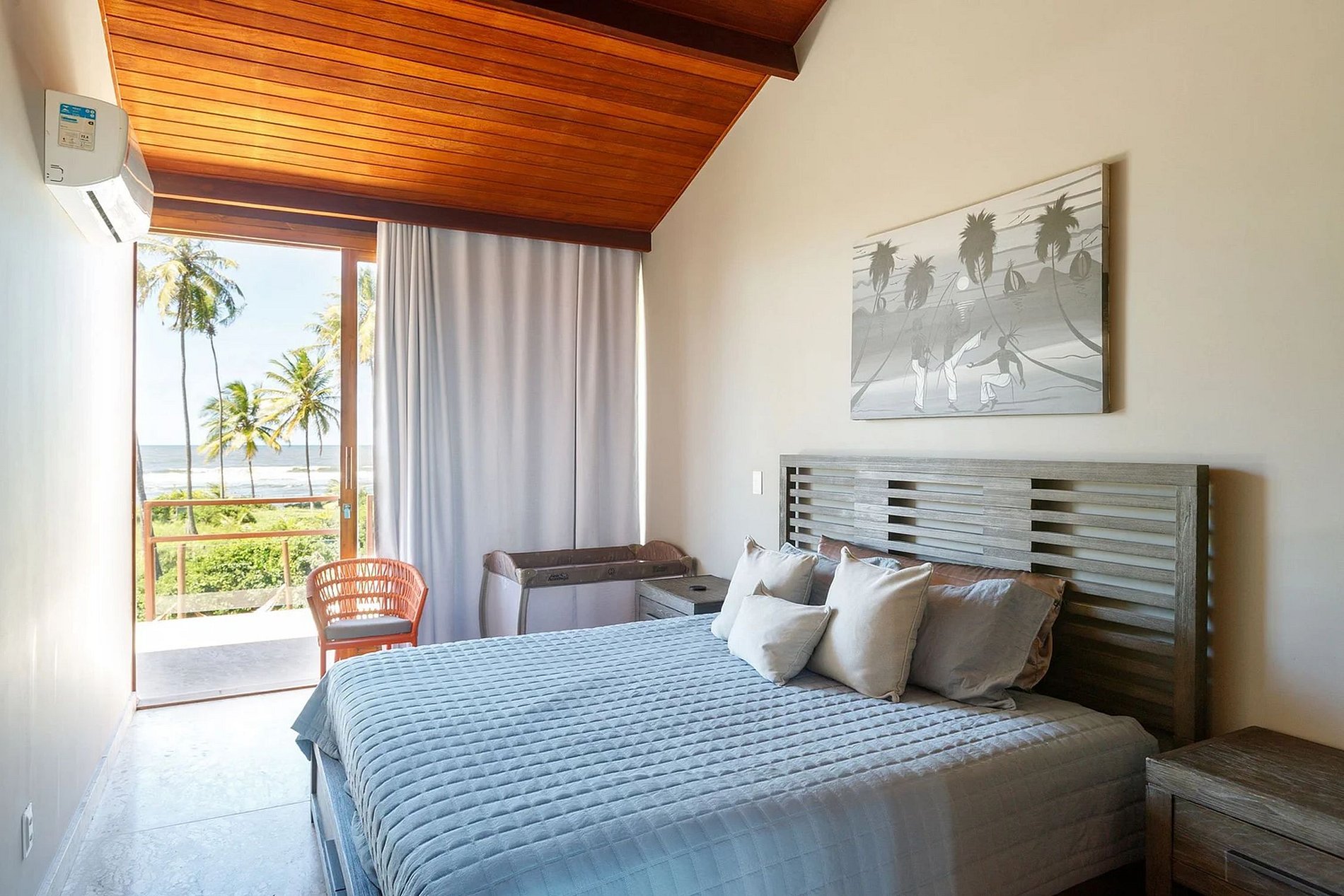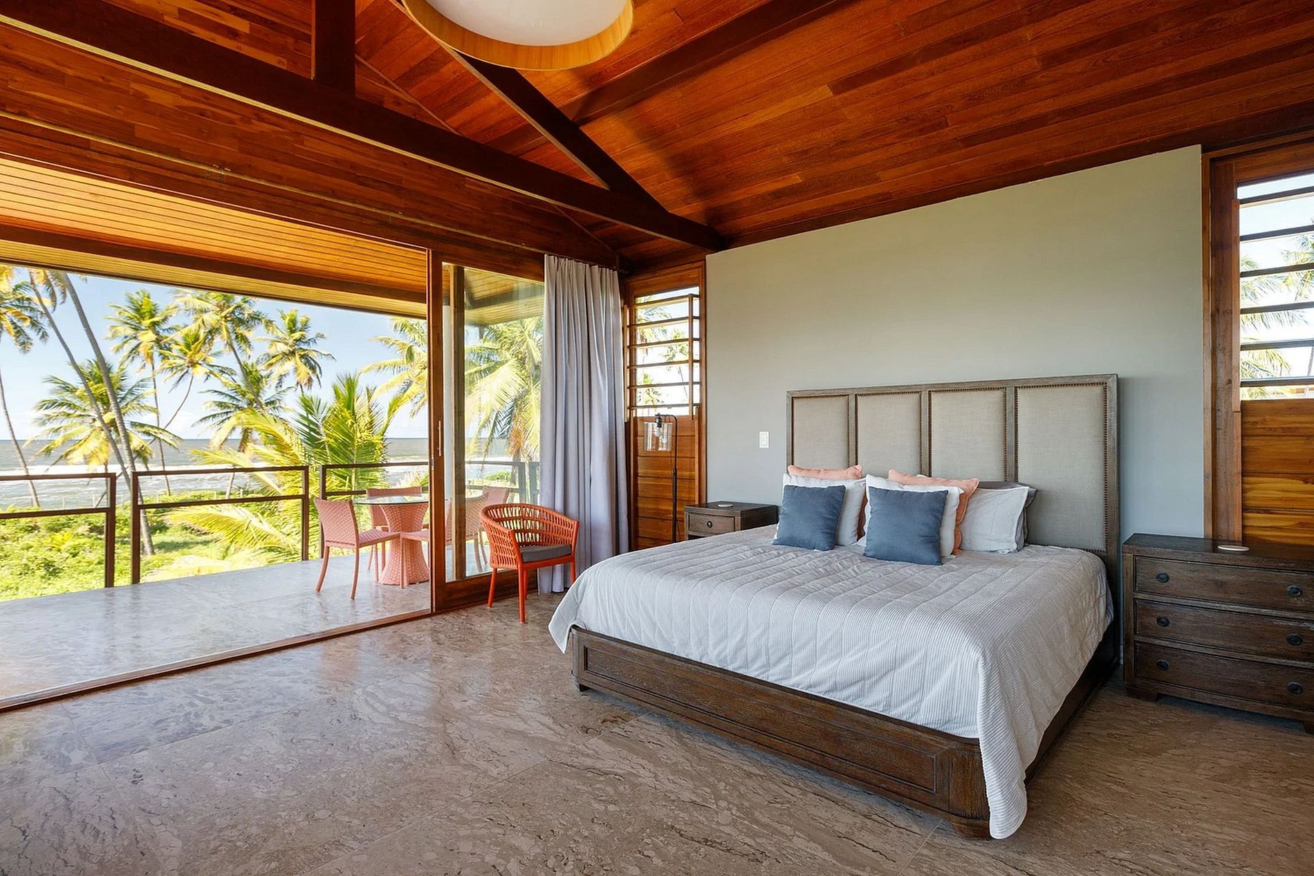 Ascending to the upper level reveals 3 delightful suites, all air-conditioned with private bathrooms, ensuring optimal comfort for all occupants. The primary suite stands out with a super king-size bed, a double sofa bed, and a balcony overlooking the sea. The second suite features 2 queen-size beds and an ocean view, while the last suite boasts a king-size bed and a balcony with a sea vista.