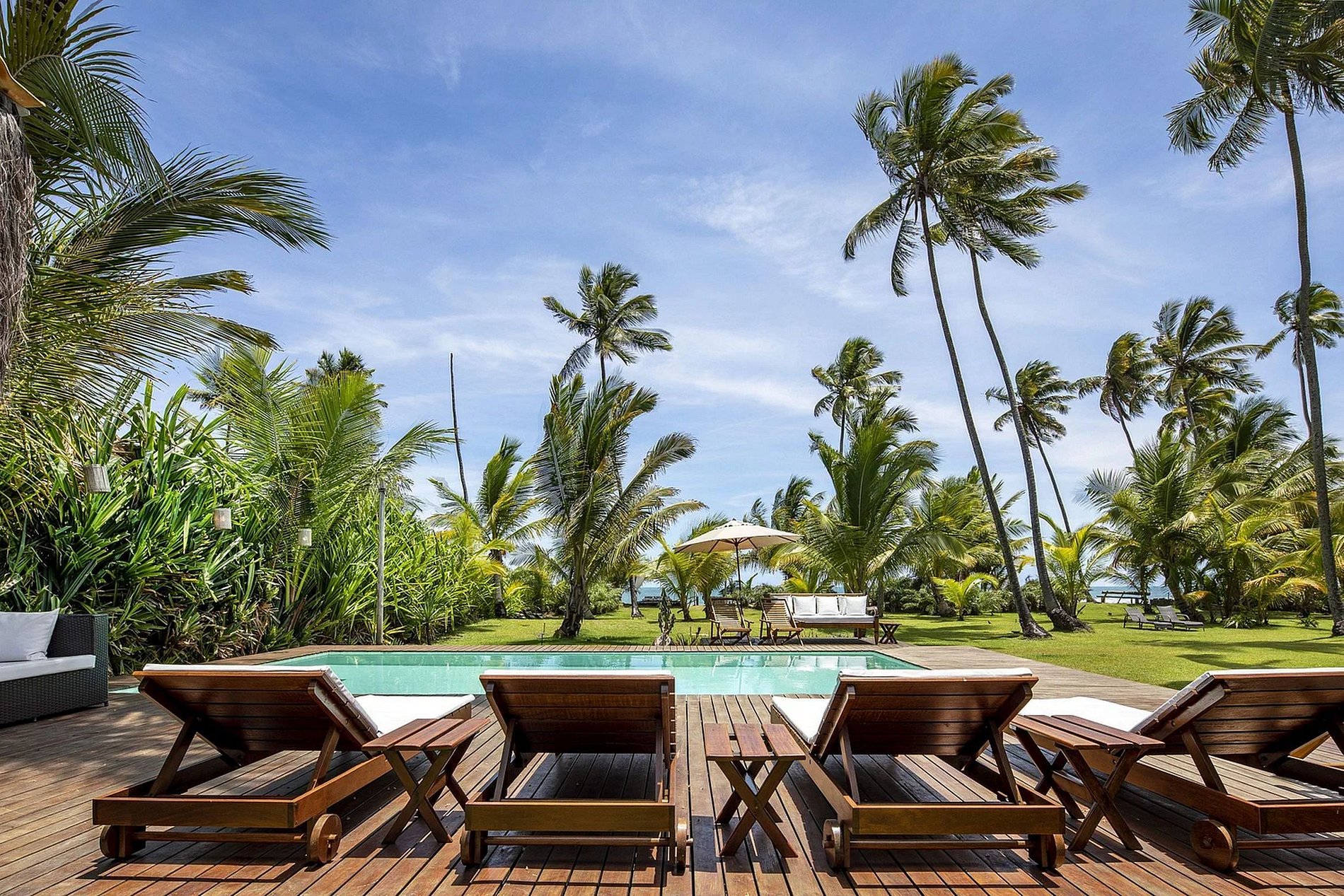 Captivating seaside residence boasting 50 meters of shoreline along Bombaça Beach, surrounded by a sprawling 2000 m² tropical garden. The enticing pool nestled amidst swaying coconut trees beckons you to savor the moment, complemented by a gourmet enclave ideal for extended family luncheons.