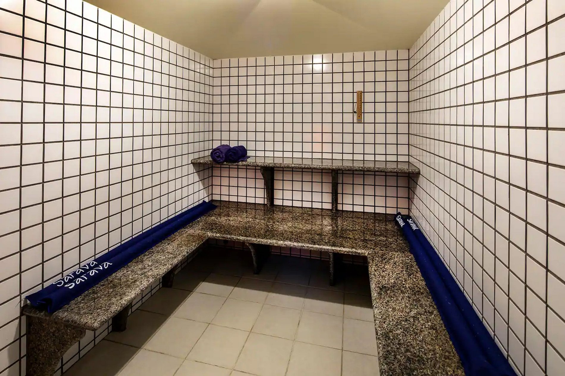 The outdoor area includes a charcoal barbecue, covered as well as an outdoor table for 14 people, overlooking the pool and connecting to the sauna. The deck has a covered area with armchairs, perfect for enjoying the spectacular sunset.