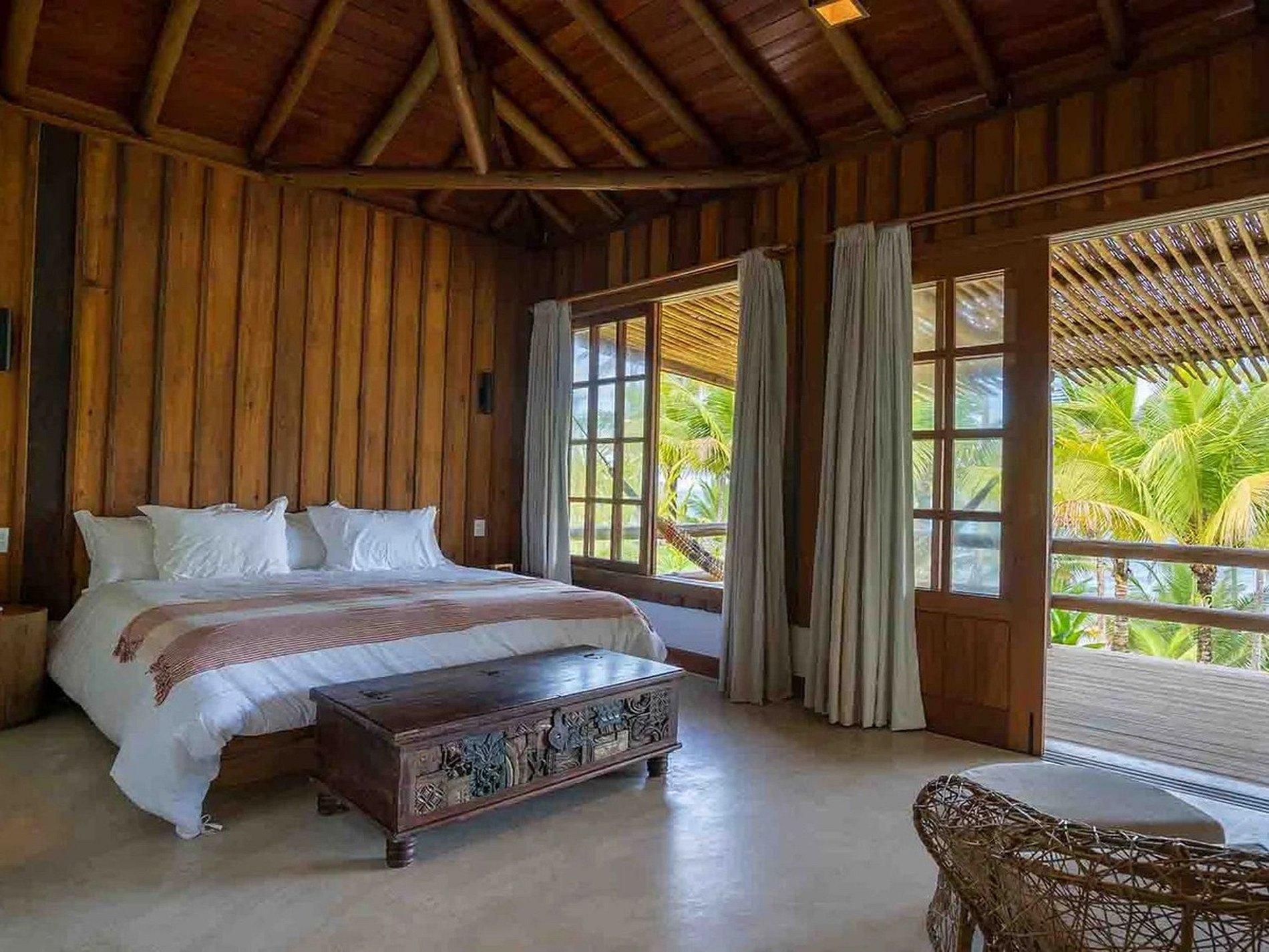 There are 4 comfortable suites—two with ocean views and two with forest views—designed to provide privacy and well-being. It comfortably accommodates up to 10 people, making it perfect for gathering family and friends in an inspiring setting where the blue of the sea meets the green of nature.