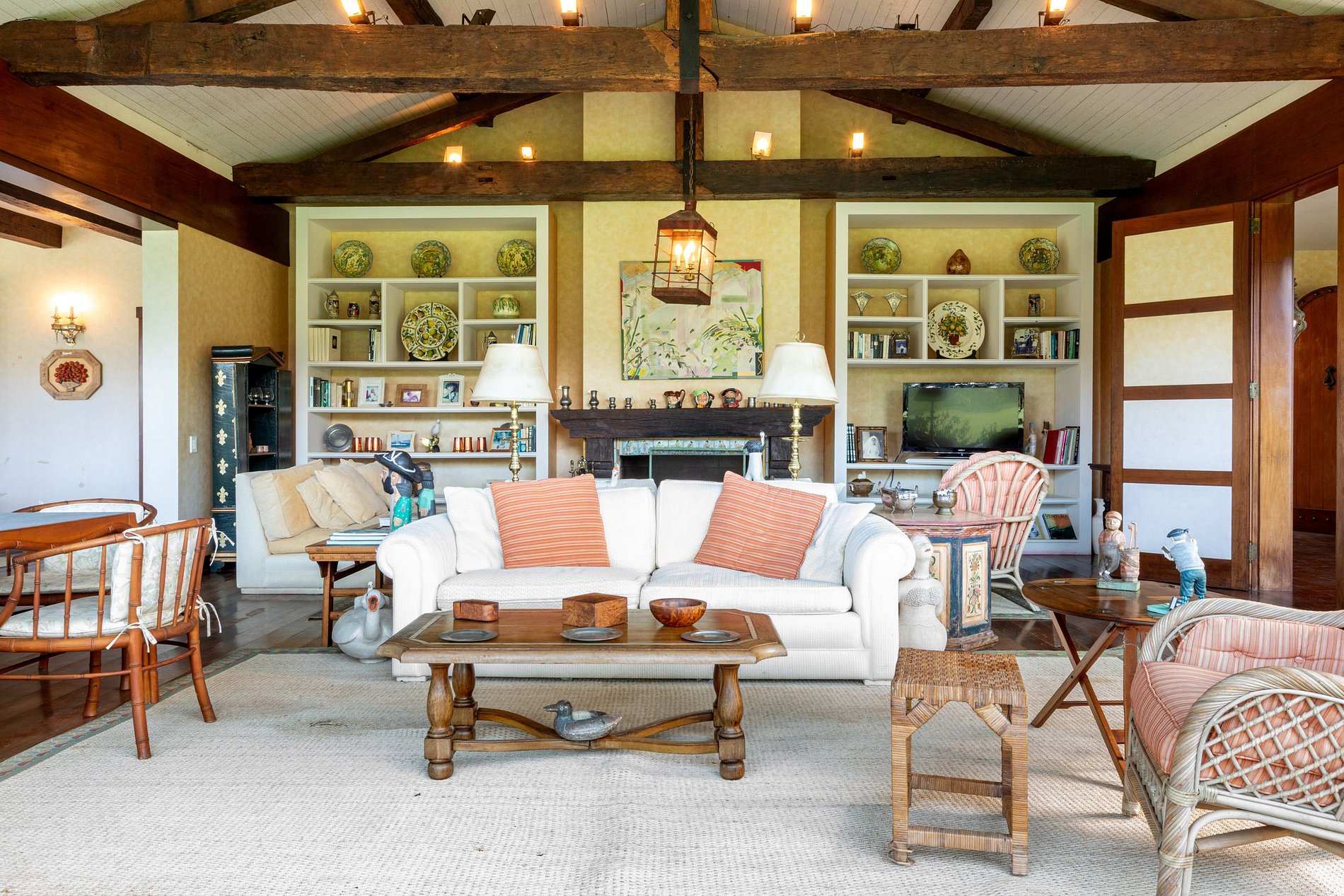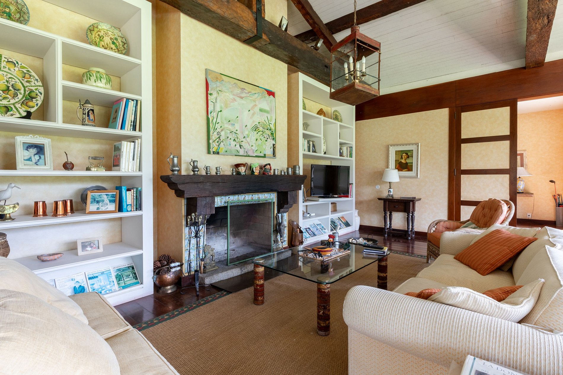 The interior of the house impresses with its impeccable decoration throughout. The living room features two comfortable sofas, one facing the garden and the other the cozy fireplace, as well as cable TV, creating the ideal setting for gathering family and friends for leisure time.