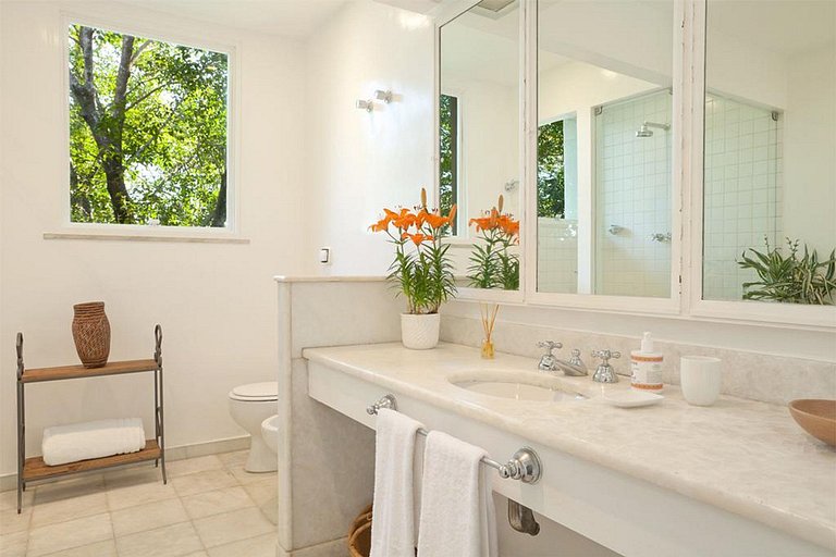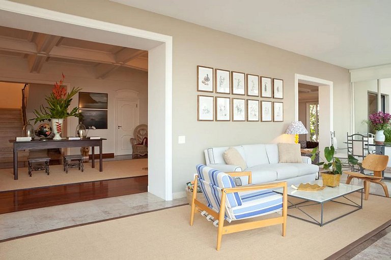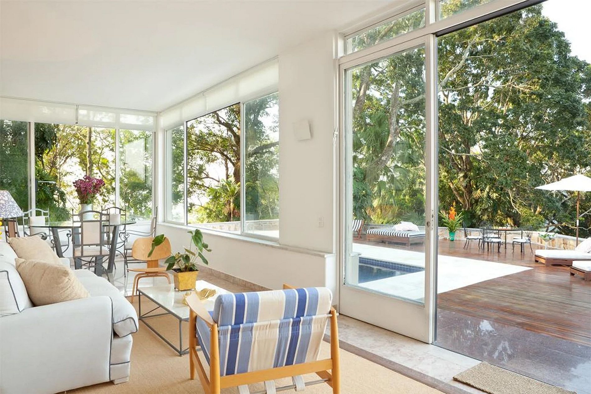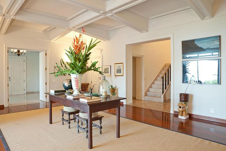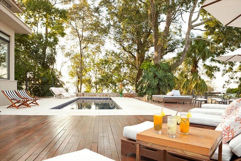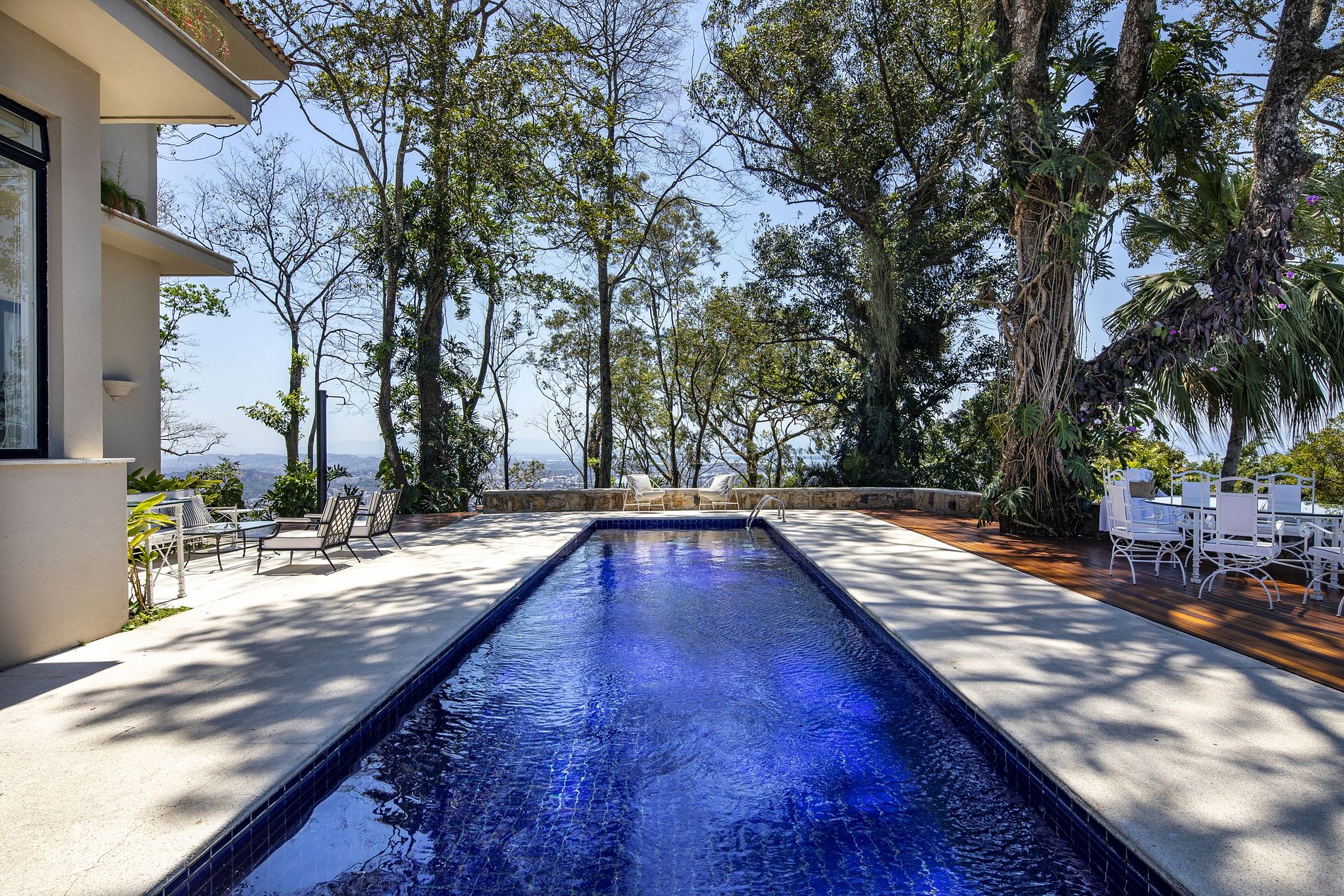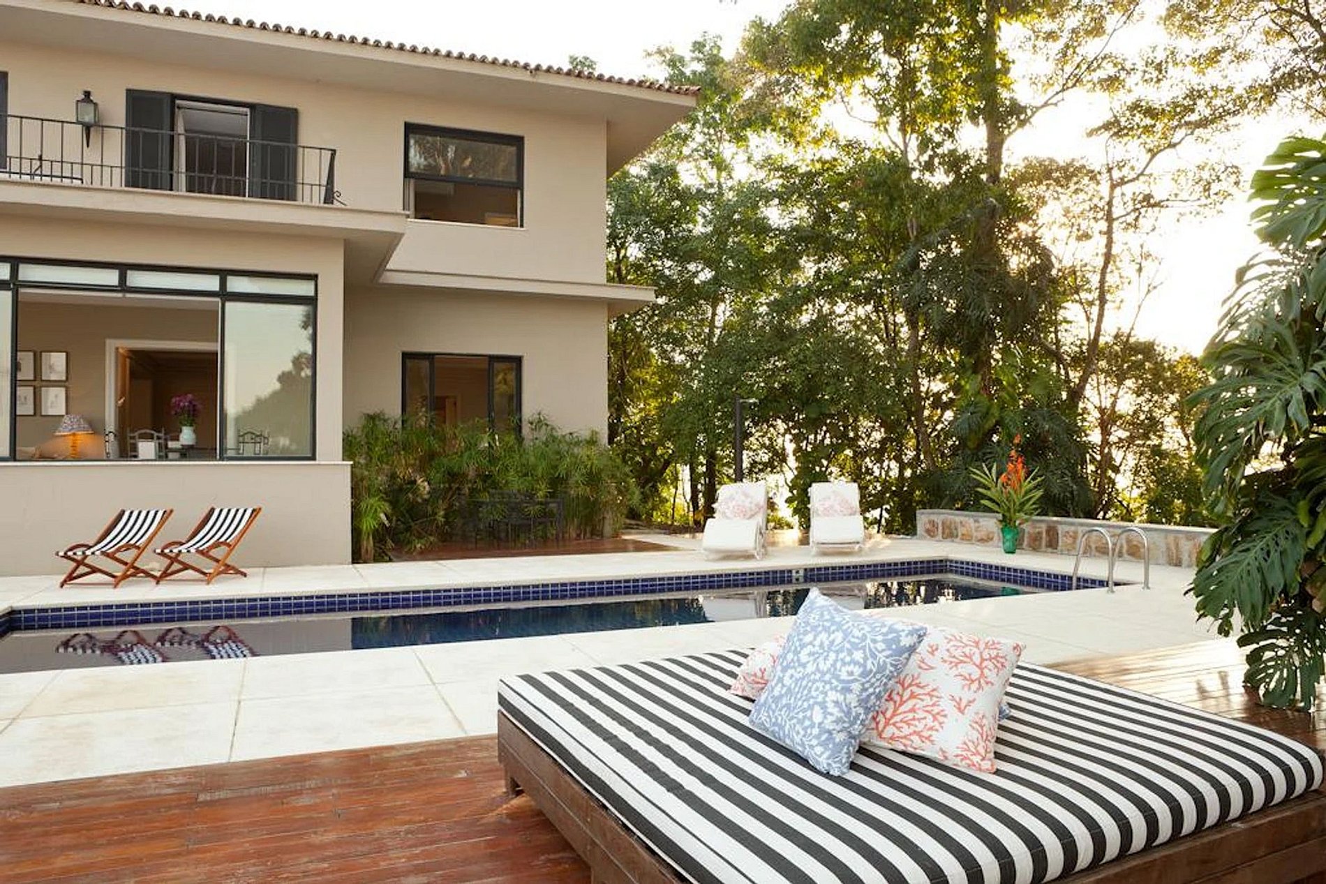 Within a gated community with 24-hour security, the house has two beautifully decorated floors, five suites, a huge garden surrounded by the Atlantic forest and a swimming pool.