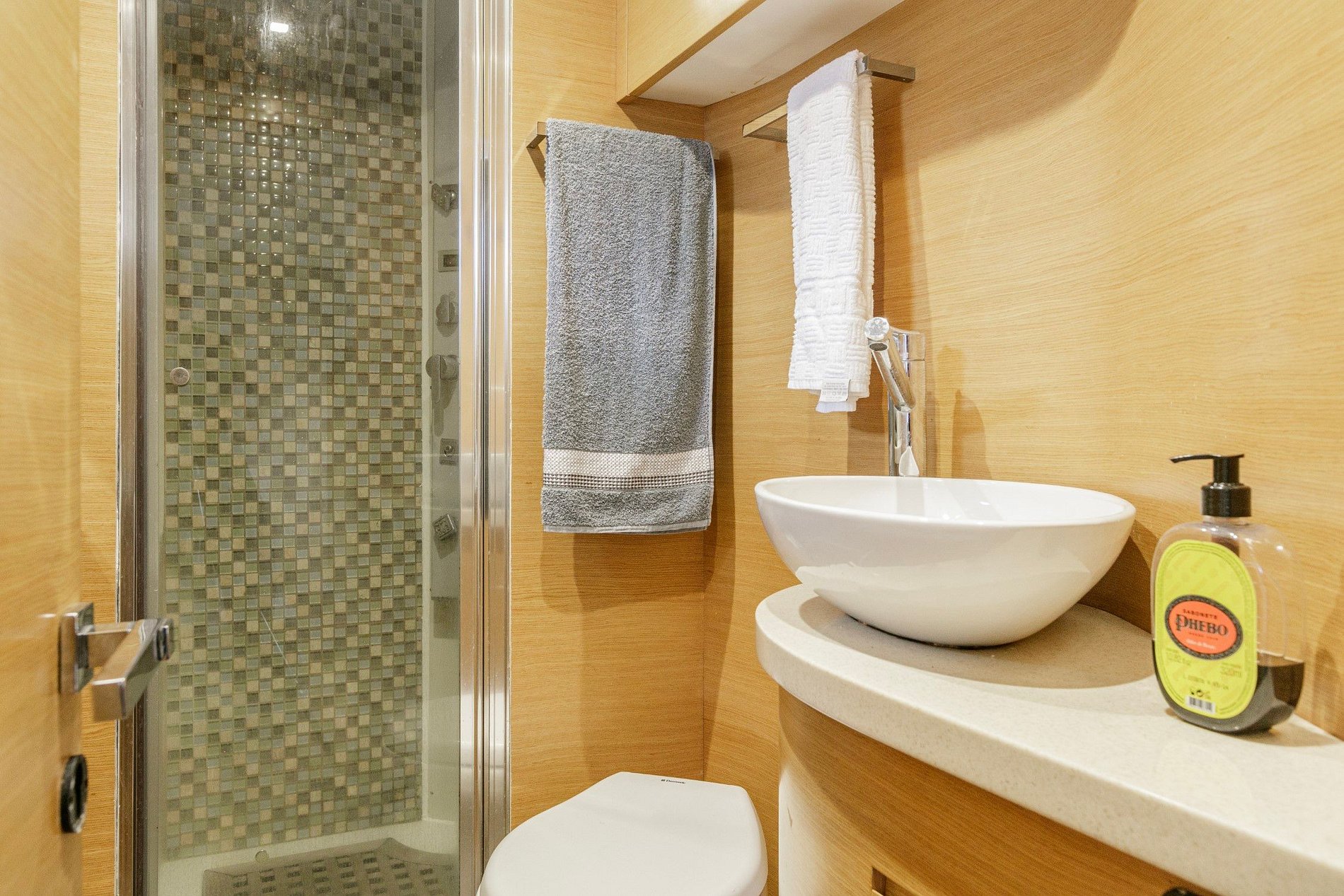 With two volvo 950 ips engines, three bedrooms, one of which is a suite, a single cabin that can also be converted into a double, and a bow cabin with a social bathroom, a full kitchen with two refrigerators 2, a mini freezer, a microwave electric stove, spacious living room with two sofas, closets in the bedrooms and in the living room, hot water in all taps, generator of 15, ice machine, Bluetooth sound, with independent automation in all environments, barbecue.