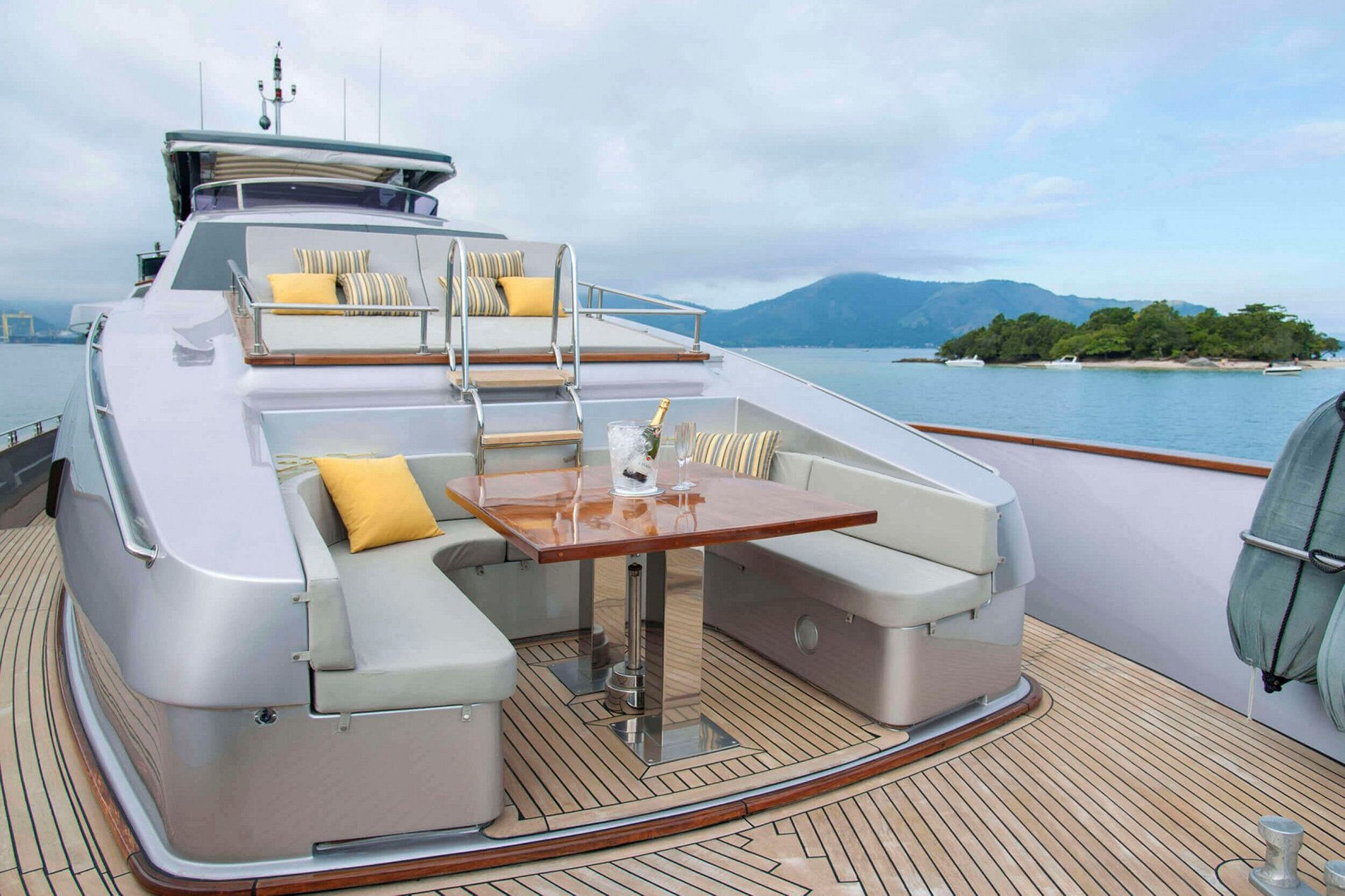 One of the most luxurious yachts in the region that offers freedom, convenience and comfort on board. The yacht consists of 4 suites with queen size beds, full kitchen, 4 beer coolers, jacuzzi, barbecue, cable and smart TV, onboard security, jet ski, stand up paddle, kayak, motorized boat, snorkel, air conditioning, wi -fi, a beautiful inner room, dining room, star room, fly-bridge, outer room - aft, outer room, bow.