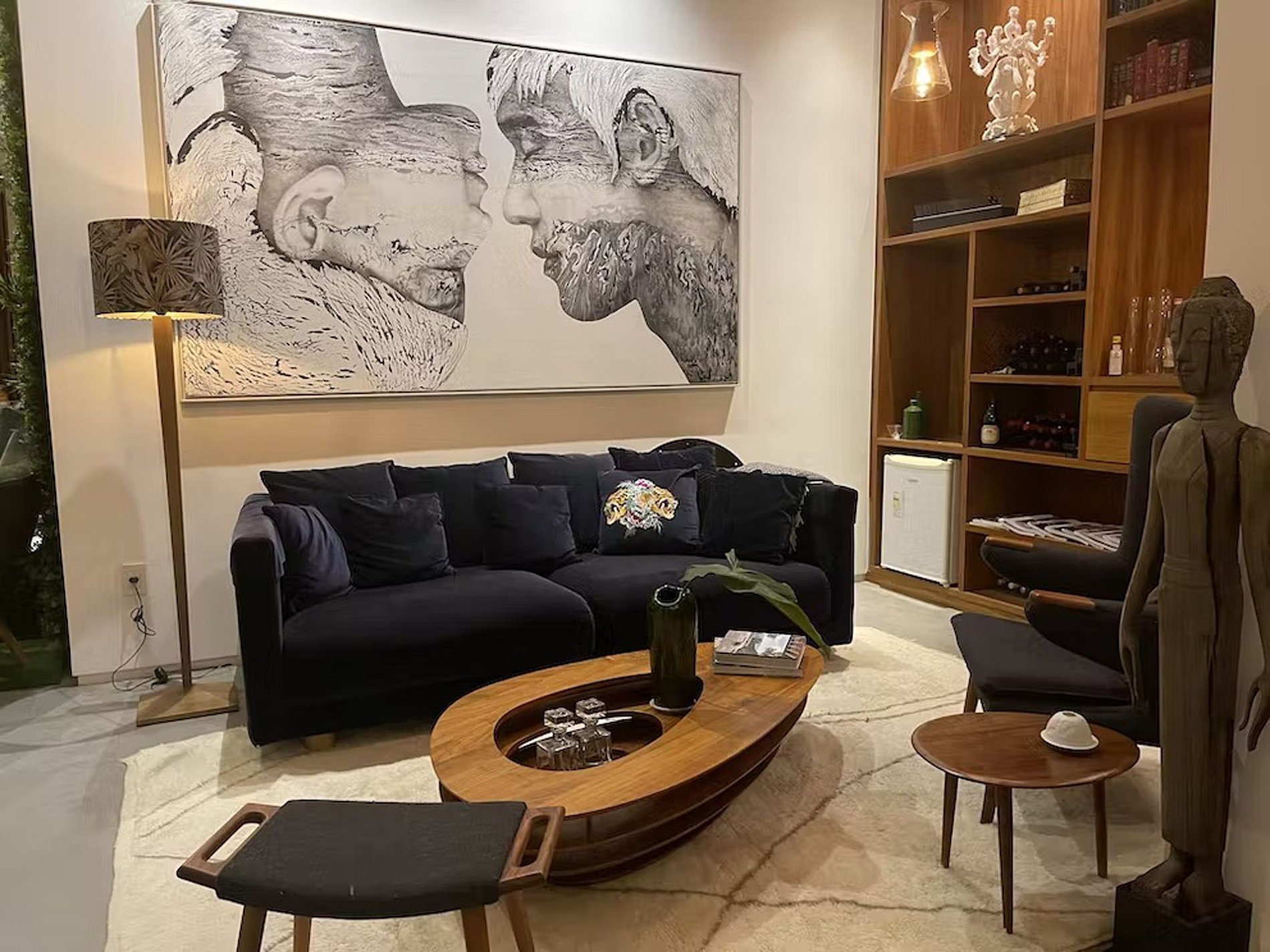 Santa Teresa hides many secrets along its hills, and at its top, surrounded by tropical forest and stunning panoramic views of all of Rio de Janeiro, we find this unique mansion. It is impossible not to marvel at the view of Corcovado Mountain, Sugarloaf Mountain and Guanabara Bay from the infinity pool overlooking the city.