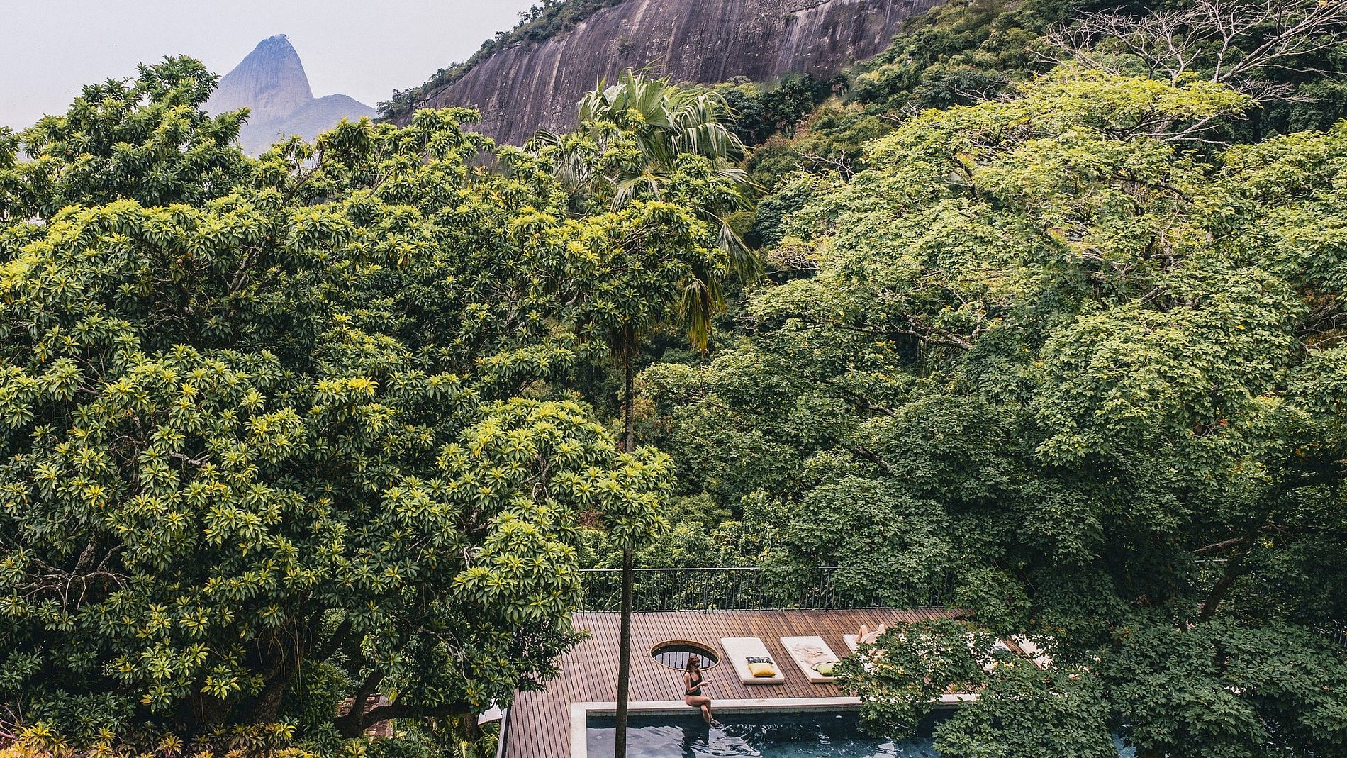 Chez Georges is an architectural heritage of Rio de Janeiro measuring 1000m2, a real hidden gem in the heart of Santa Teresa. Conceived and built by Vladimir Alves de Souza alongside Mies van der Rohe, Le Corbusier and Oscar Niemeyer, the village, protected by the Atlantic forest, has impressive views of the Sugar Loaf and Guanabara Bay throughout the property and which become even more formidable from its 360º viewpoint on the terrace.