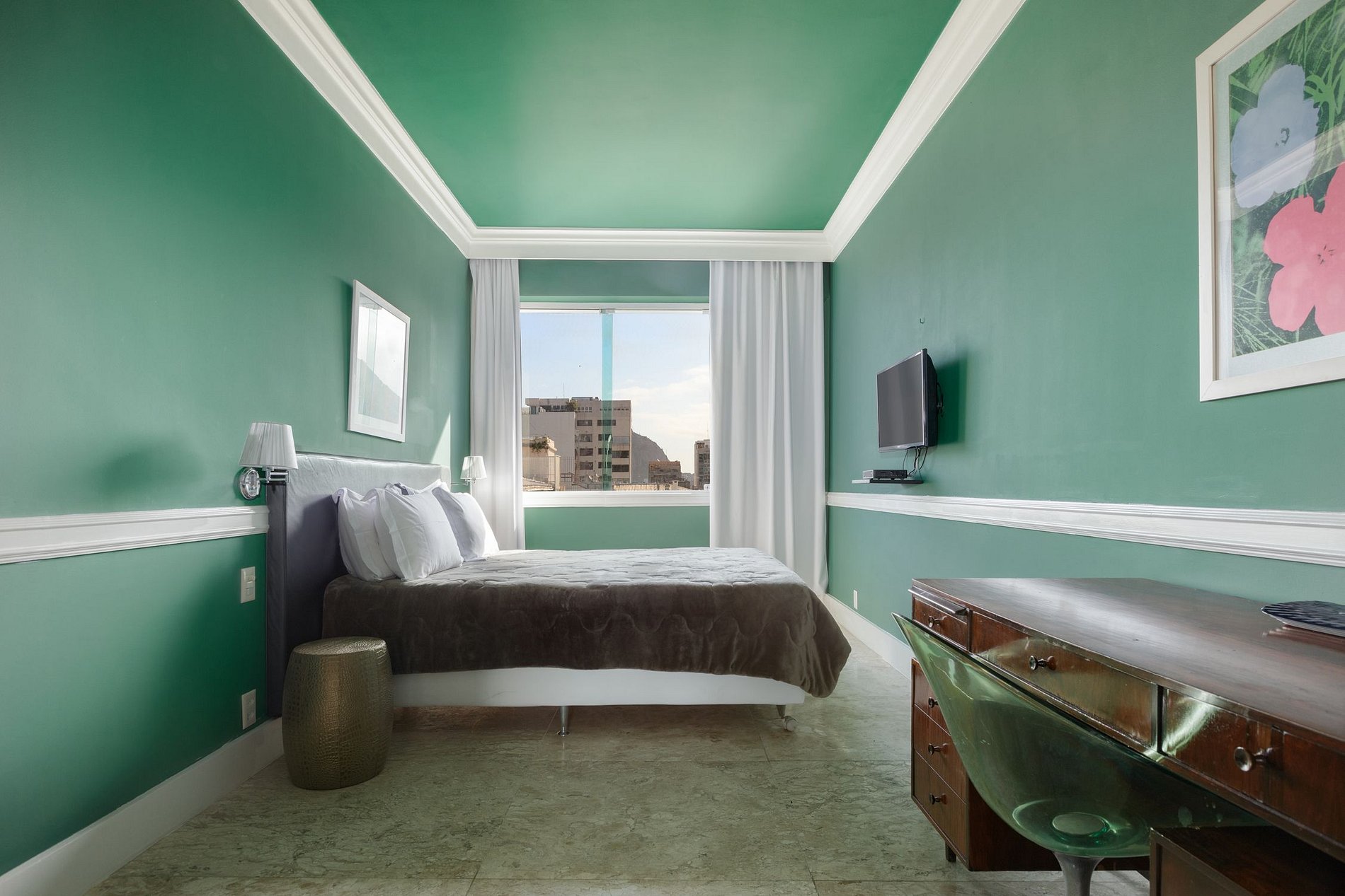 This penthouse could not be better located. Facing the sea of ​​Copacabana, and with panoramic views, its guests are rewarded for cinematic views of the phenomenal relief of Rio de Janeiro, including the Sugarloaf Mountain and Christ the Redeemer.