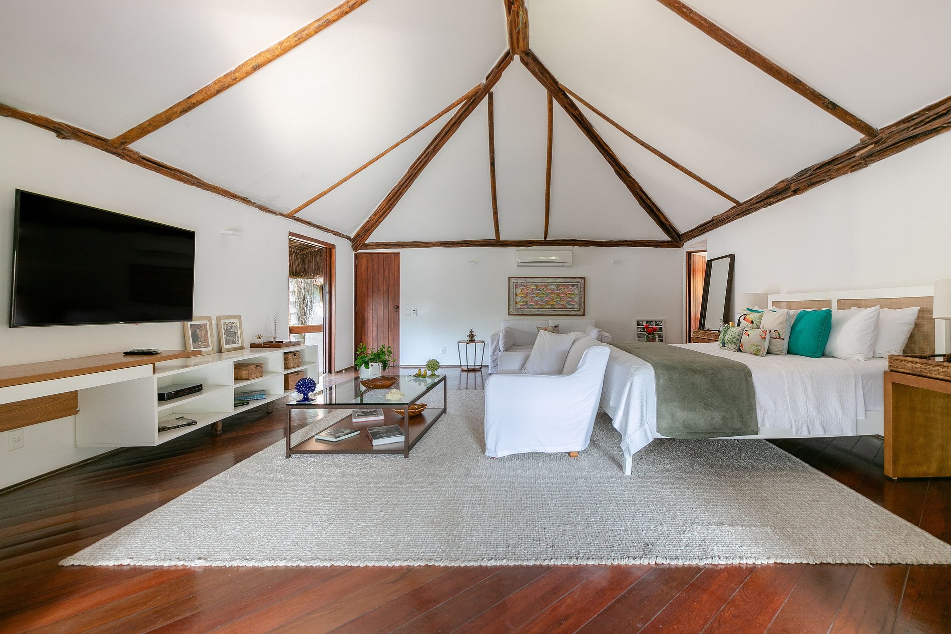 The setting is cinematographic: in its construction, the use of natural materials in total harmony with the local nature was valued, the integration between the interior and exterior takes place in a precise way, the natural luminosity is abundant, awakening feelings of peace, tranquility, and comfort to those who enjoy their stay. The decoration is unpretentious but full of bossa.