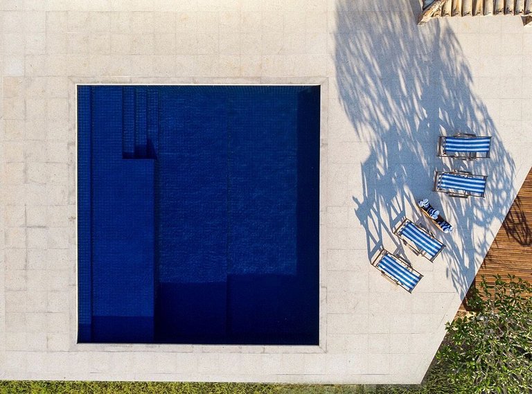 With an architectural decoration in the best Mediterranean/tropical style, this house with five double suites (all with sea views) and a long deck that seems to float over the spa, integrates its social and leisure areas perfectly: dining to the gourmet barbecue area, party room to the 55” TV room, from the pool to the sauna.