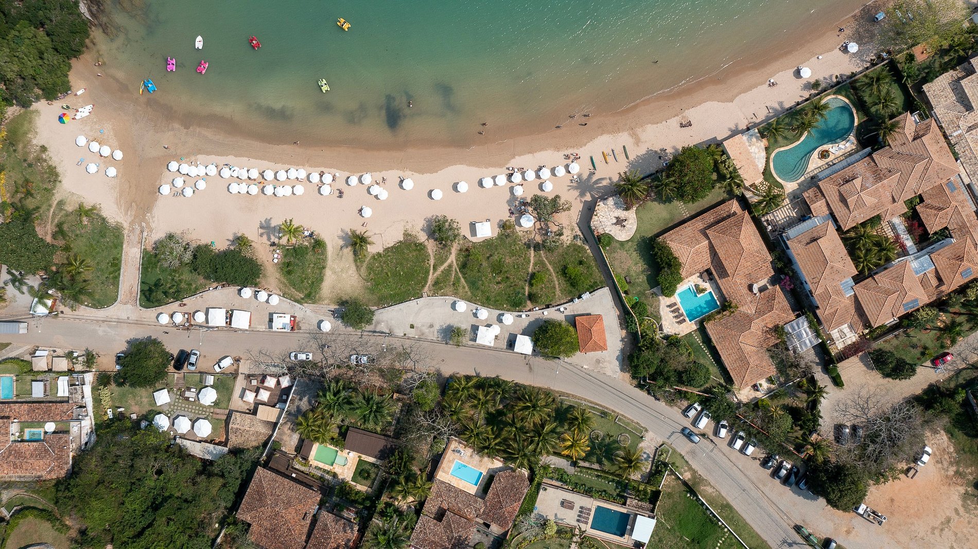 From its internal area, with air-conditioned suites, a fully equipped kitchen, bar and rooms integrated to its exterior with a swimming pool, sauna, shower, and gourmet area. The jewel of the house is the charming flowered pergola, almost “on the sand”, where it is possible to have meetings and meals in the open air framed by the paradisiacal blue of the Ferradura sea.