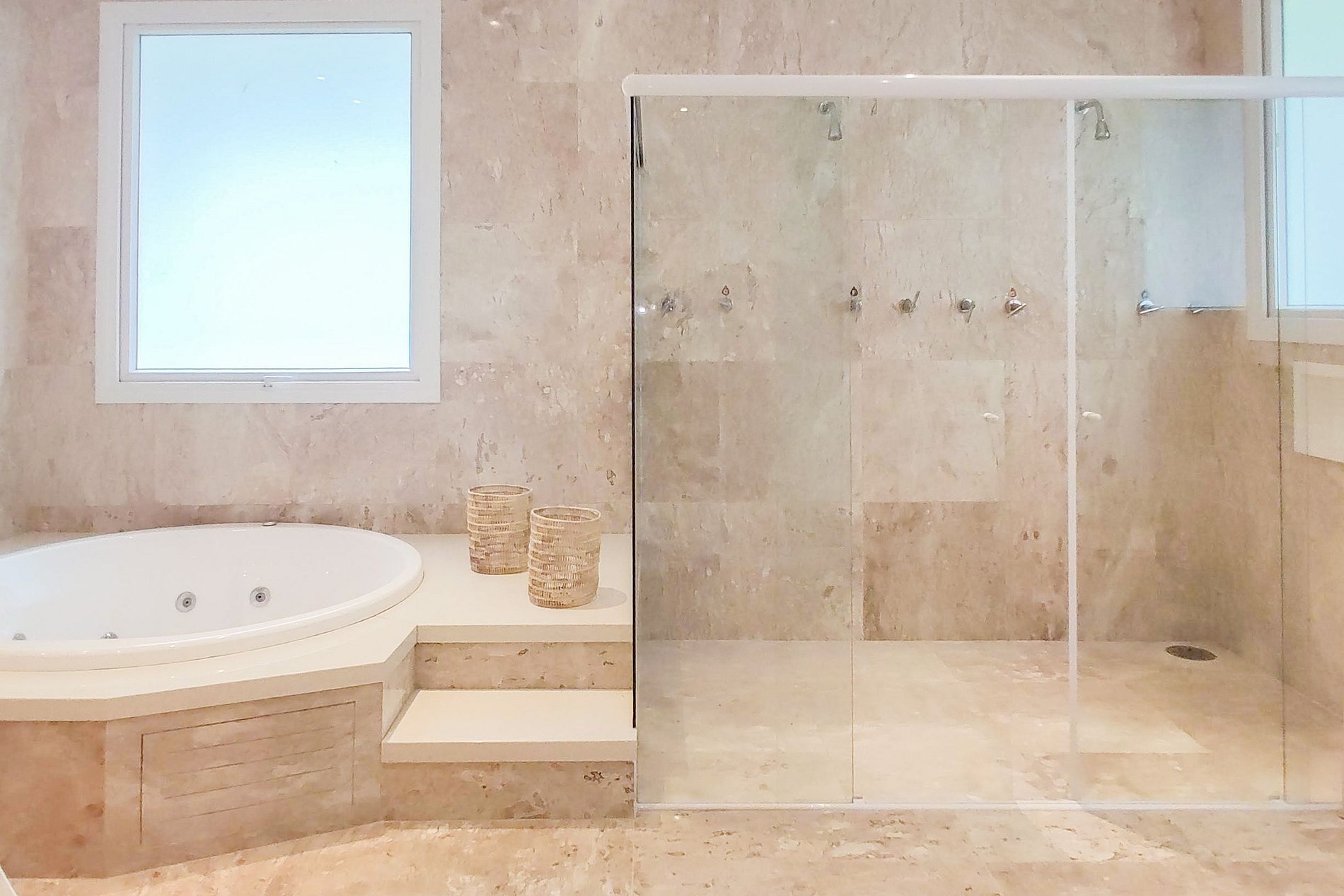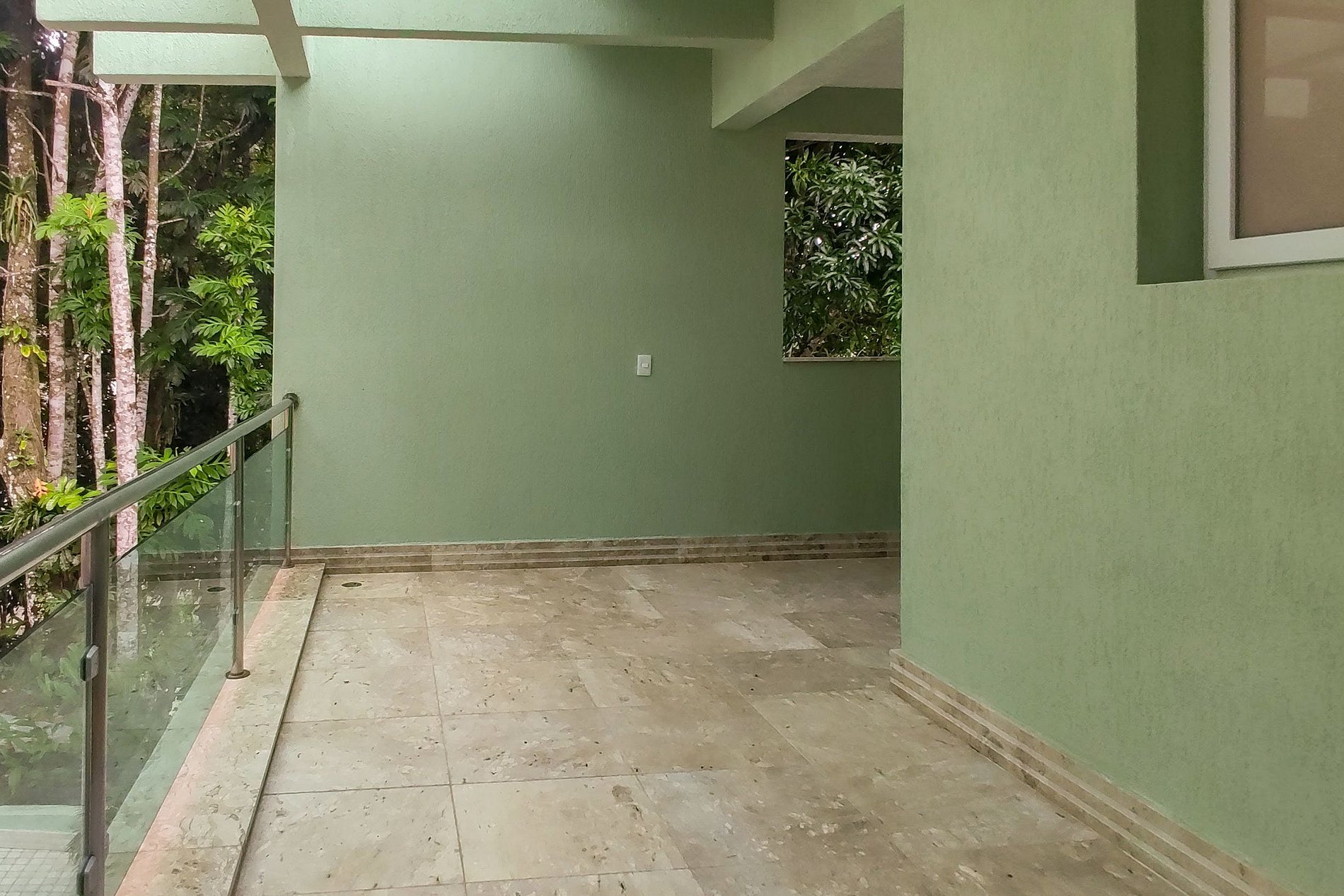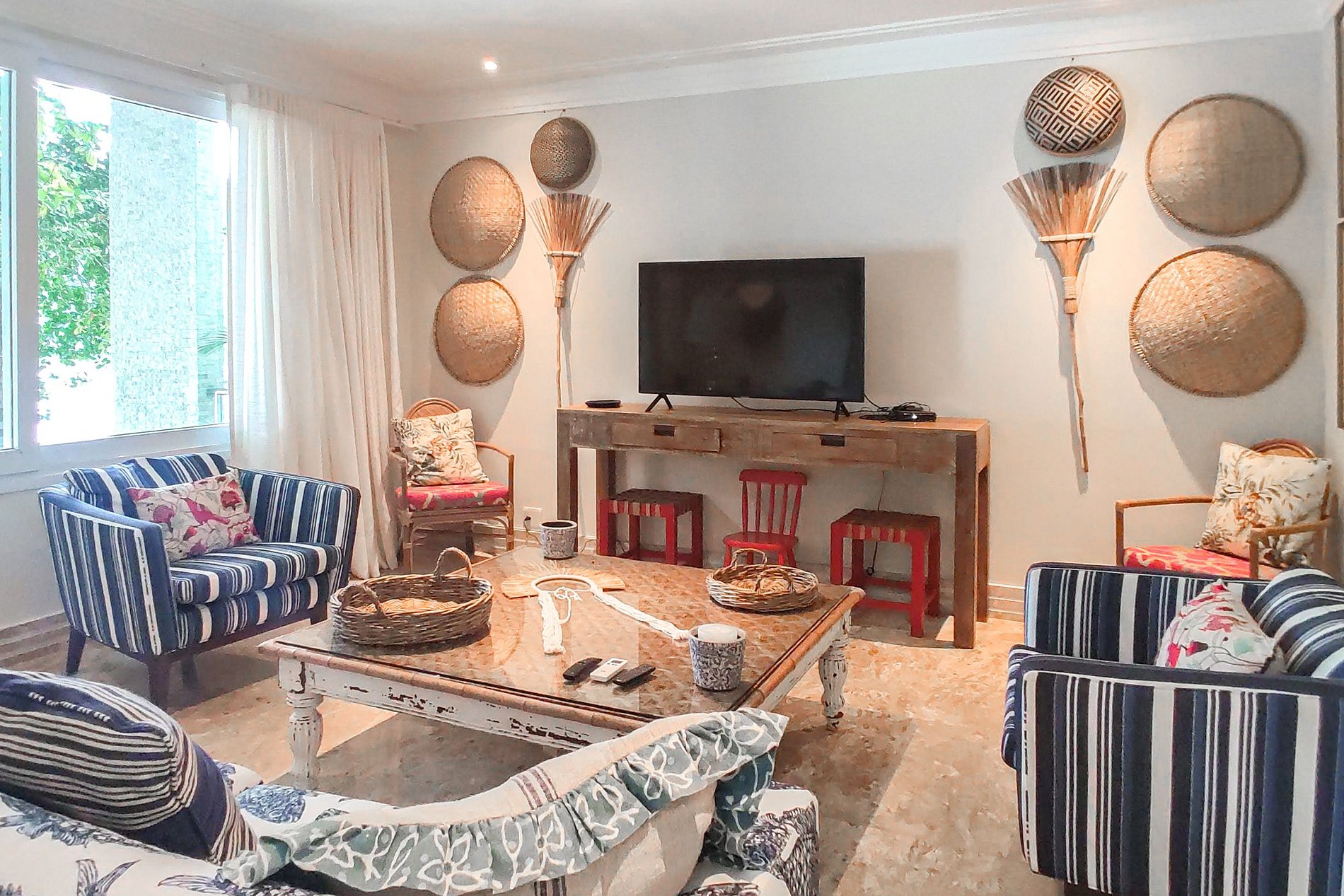 Within an area of 300 thousand square meters of preserved Atlantic Forest, in a high-end condominium with only three properties and a private beach with warm and crystalline waters, we find this exquisitely decorated house that combines high-end furniture and materials with the typical Brazilian handicraft.