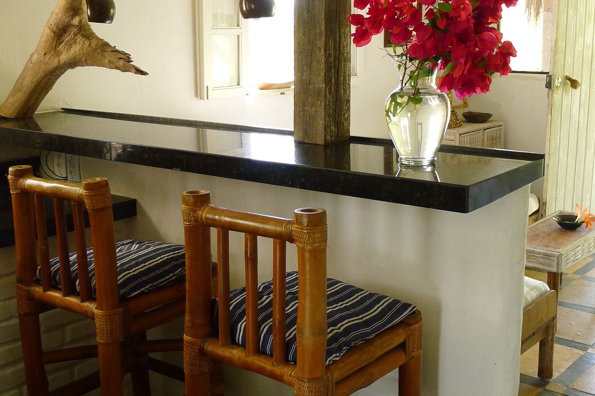 Casa Maison: 3 bedrooms (2 Balinese suites on the ground floor and a special king suite on the 2nd floor with a luxury bathroom and jacuzzi). Includes a grand hall with a dining table for 15 people, a library, TV, 3 verandas, a gourmet eat-in kitchen, and a covered veranda for meals with seating for 15 people. Private pool.