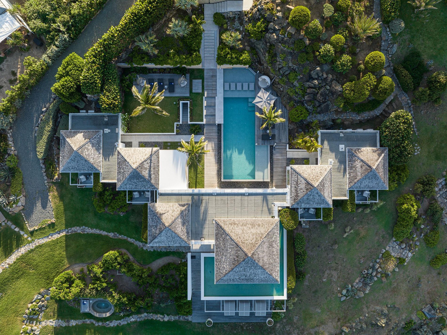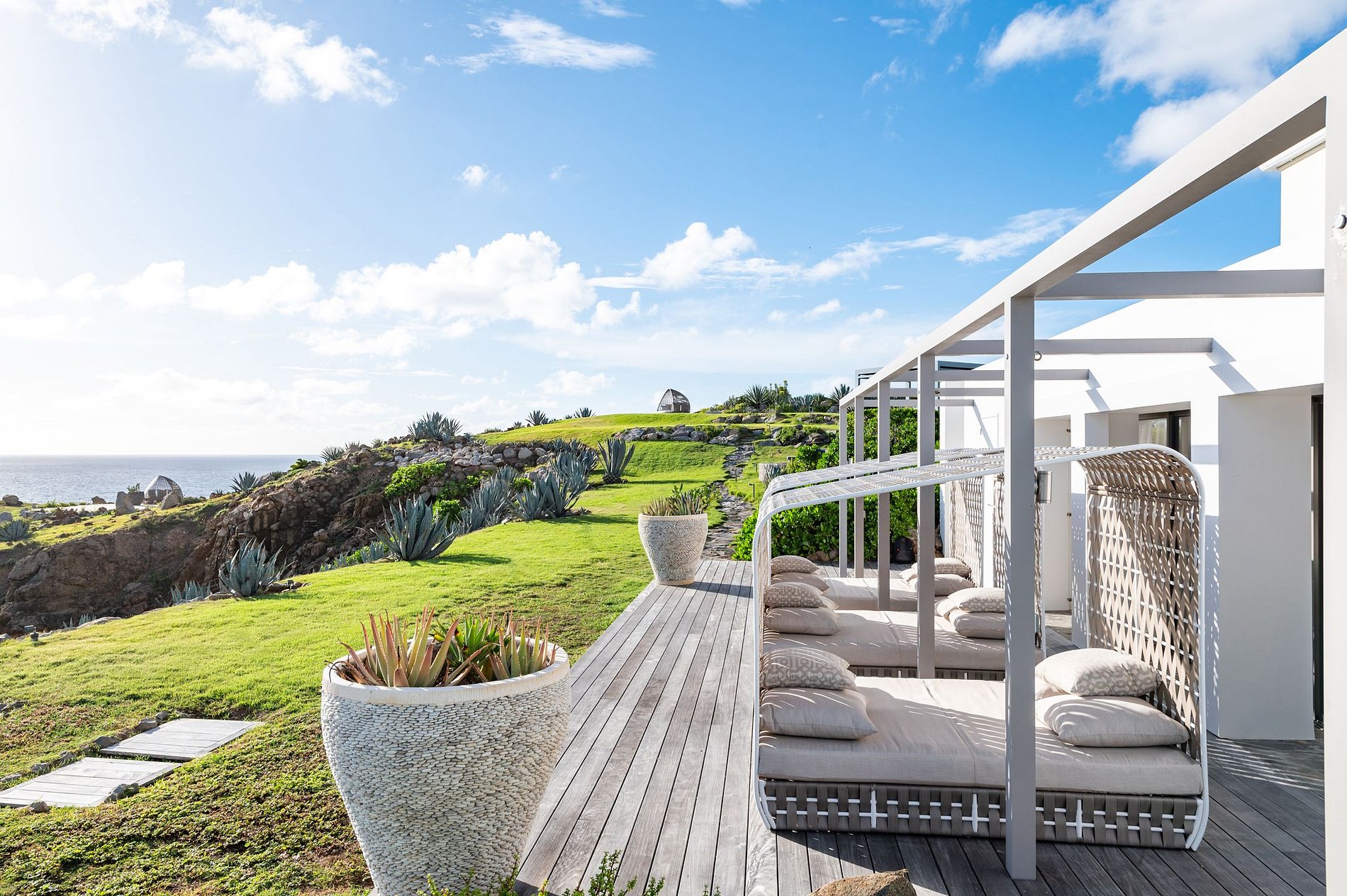 This stunning retreat in St. Barthelemy is located on an exclusive 3-hectare beachfront area, offering an unparalleled experience of comfort and privacy. With 6 suites spread across two villas, the property is equipped with cutting-edge technology, including smart TVs, Sonos sound systems, and Amazon Alexa.