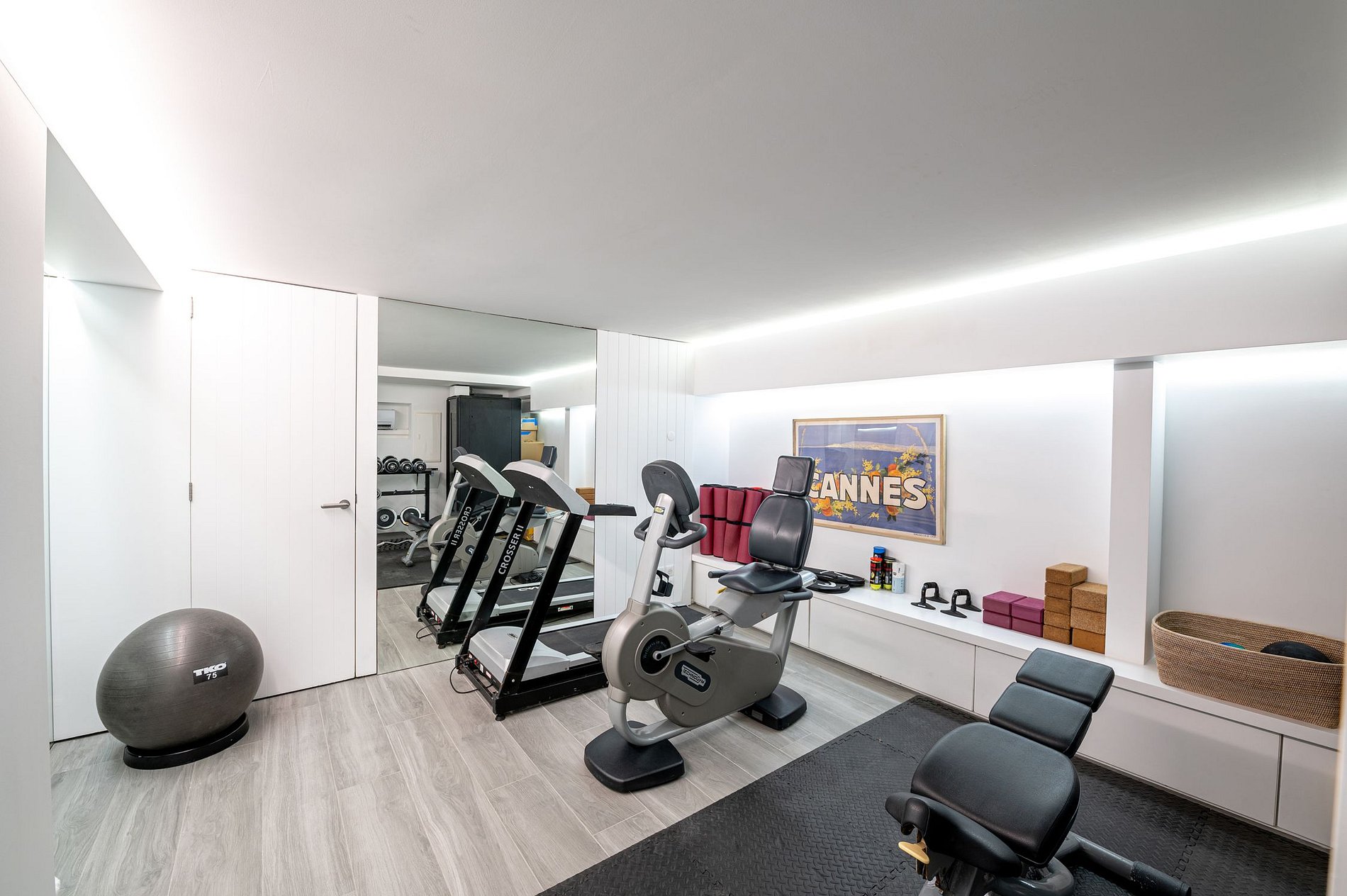 The contemporary interior design combines natural materials with a minimalist style, featuring custom-made furniture and wood and marble finishes. Art pieces from international artists and renowned furniture brands add a special touch to the living spaces.