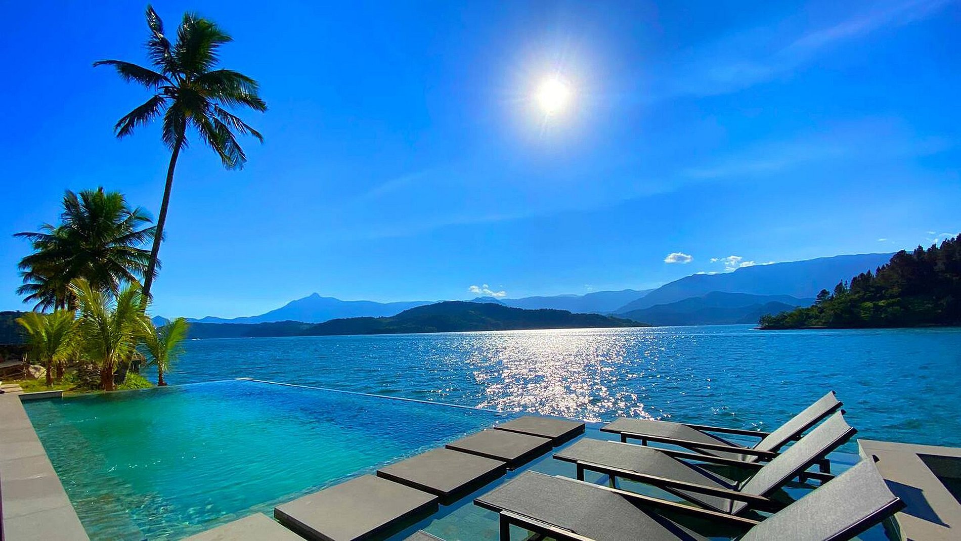 A house of striking and imposing architecture, located by the sea in Angra dos Reis. The property is organized into a main house, a bungalow and more independent social areas, all covered and distributed over the hill until reaching sea level, where the pier, the infinity pool and the hydromassage are located.