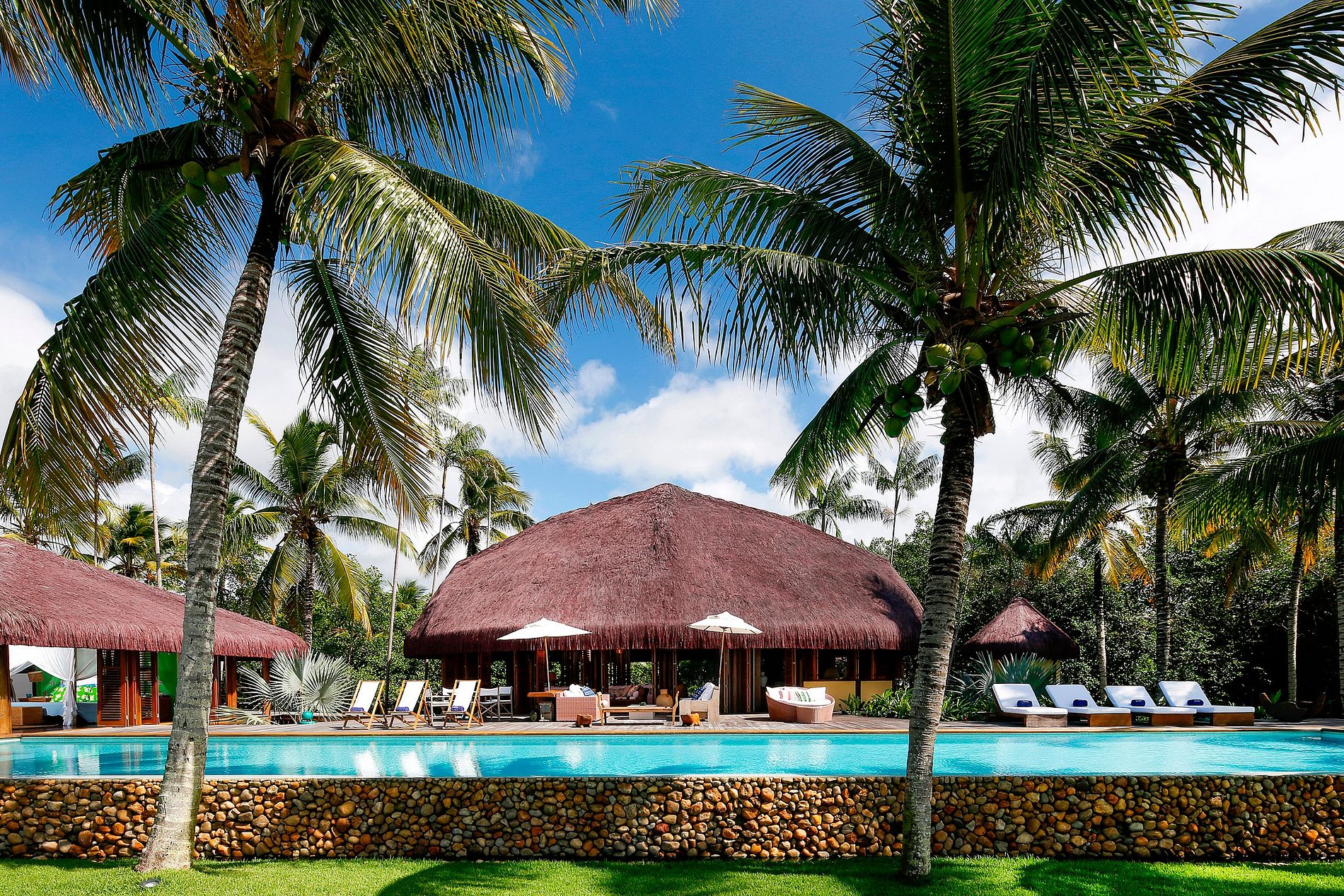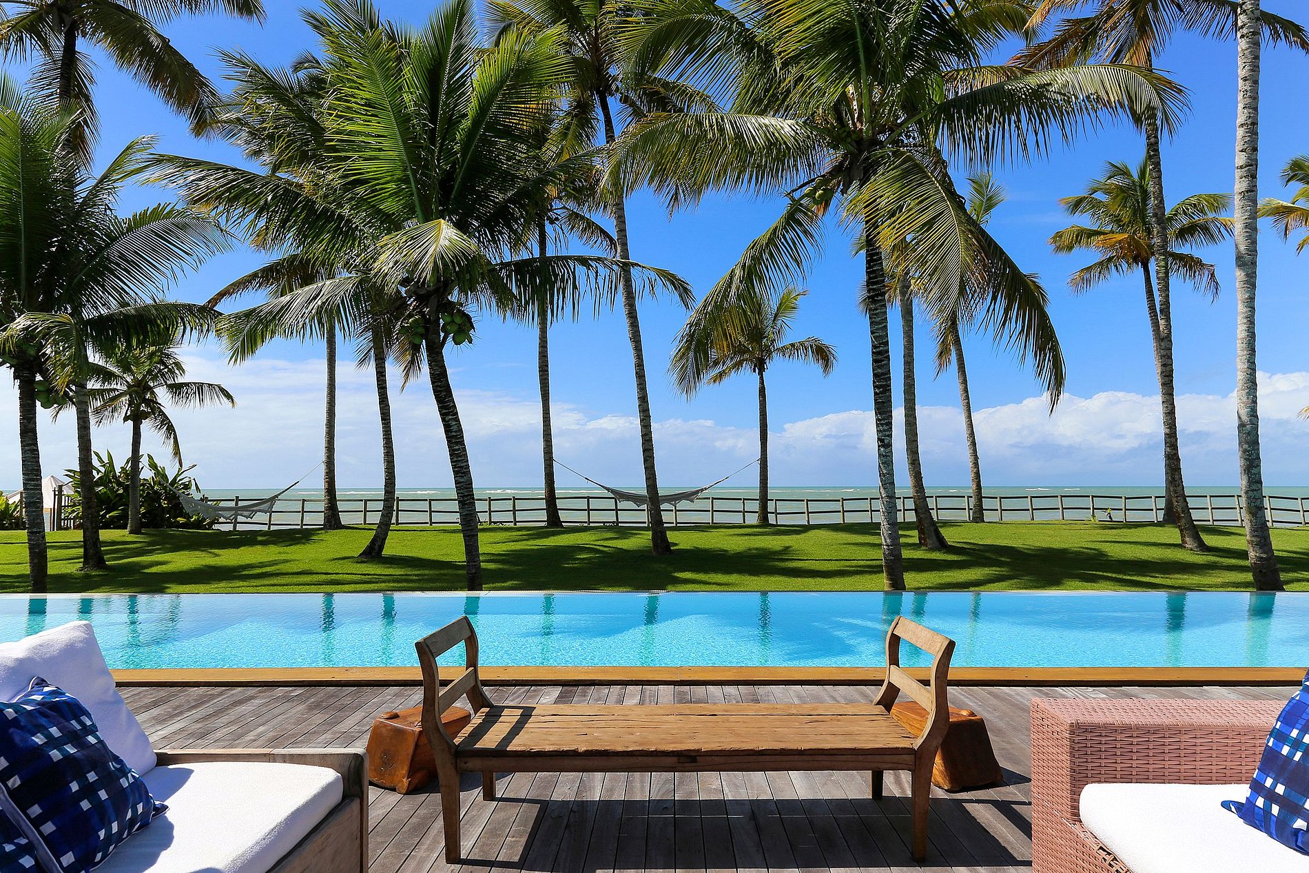The lounges are all open to the stunning 25 meter infinity pool overlooking the sea and its white sand beach.