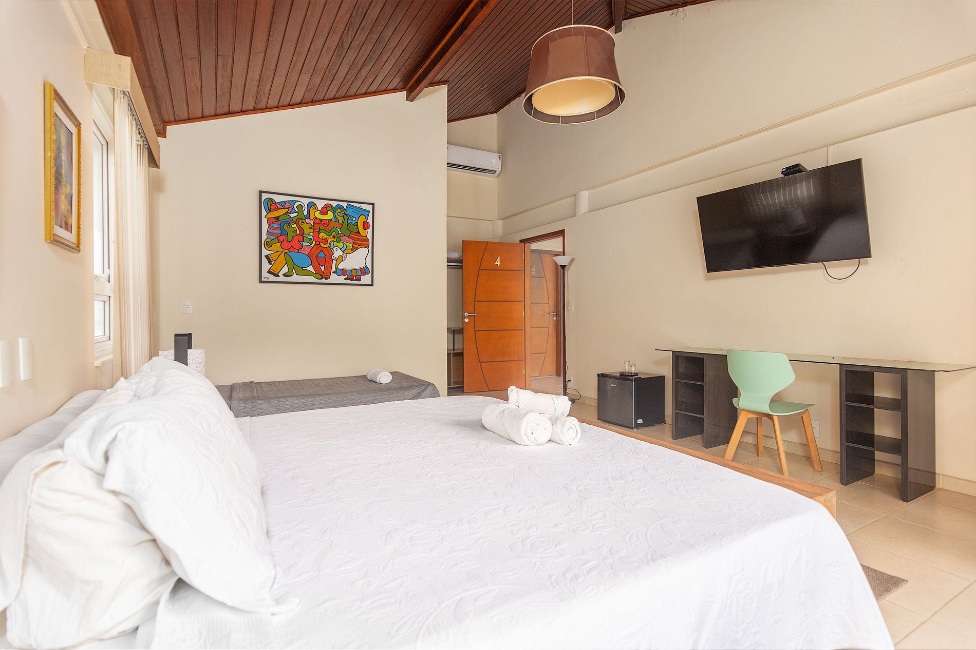 • Suíte 4: cama de casal e uma cama de solteiro, com ambiente acolhedor.