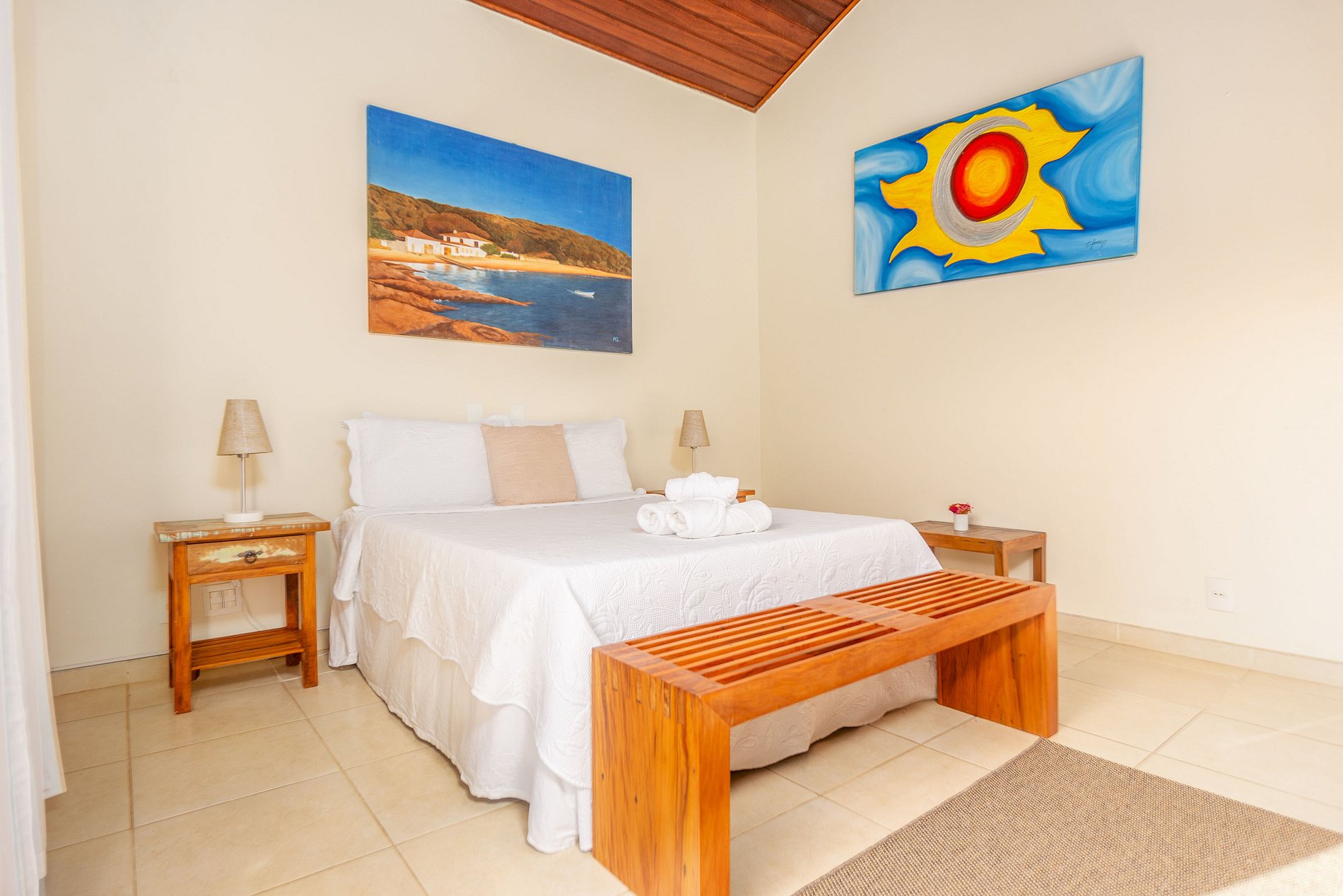 • Suíte 5 (Master): cama king-size, varanda privativa com vista para o mar, um verdadeiro refúgio de tranquilidade.