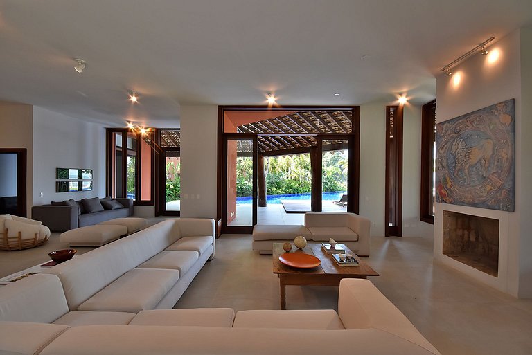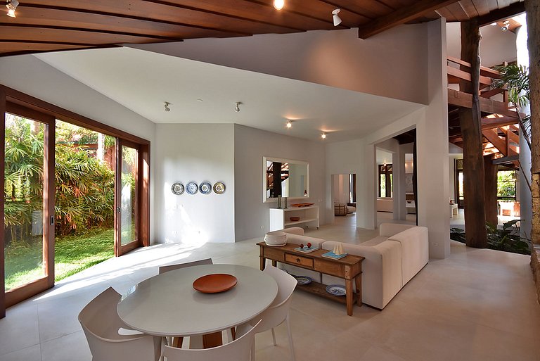 At the foot of the sands of the stunning Engenho beach, close to Barra do Uma and Juquehy, where there is a wide range of gastronomy and entertainment, we find this property, a place to fall in love and enjoy an unforgettable vacation. With an impeccable architectural project by Gil Dorati, the house with approximately 1000m2 of floor space, has seven suites, all air-conditioned, which comfortably accommodate up to 14 people.