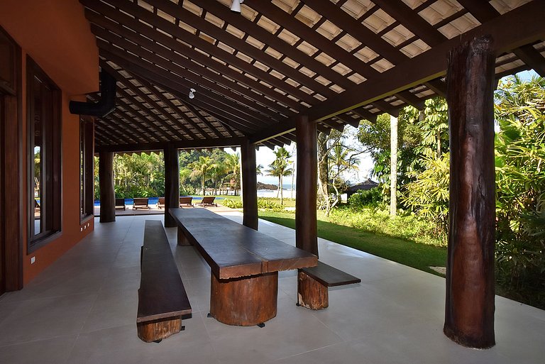In addition to the enchanting view, here guests enjoy both the pool located in the spacious garden and the beach, as the house has a tent, two umbrellas, and 14 beach chairs available. Between one dip and another, a barbecue or a good relaxing time in the property's spa, it is still possible to use the sauna for an extra charge (R$150.00 for up to 3 hours of use).