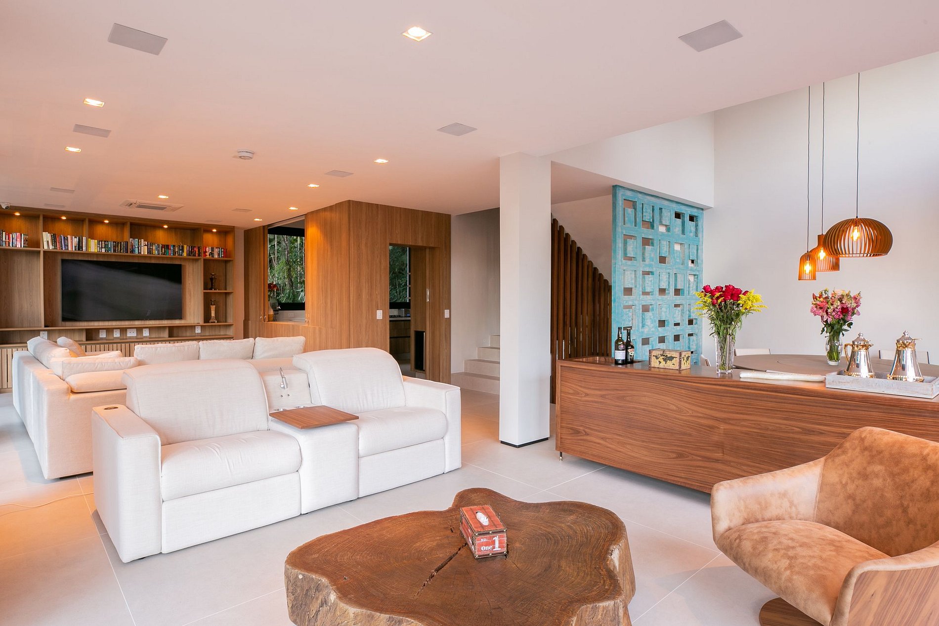 Located in a quiet and safe region of Guarujá, this house is a true haven of tranquility. With a modern and bold architecture, the house stands out in the midst of the green natural surroundings, creating a harmonious contrast that is pleasing to the eye.