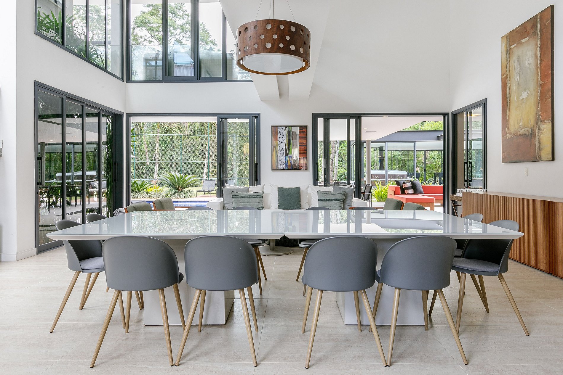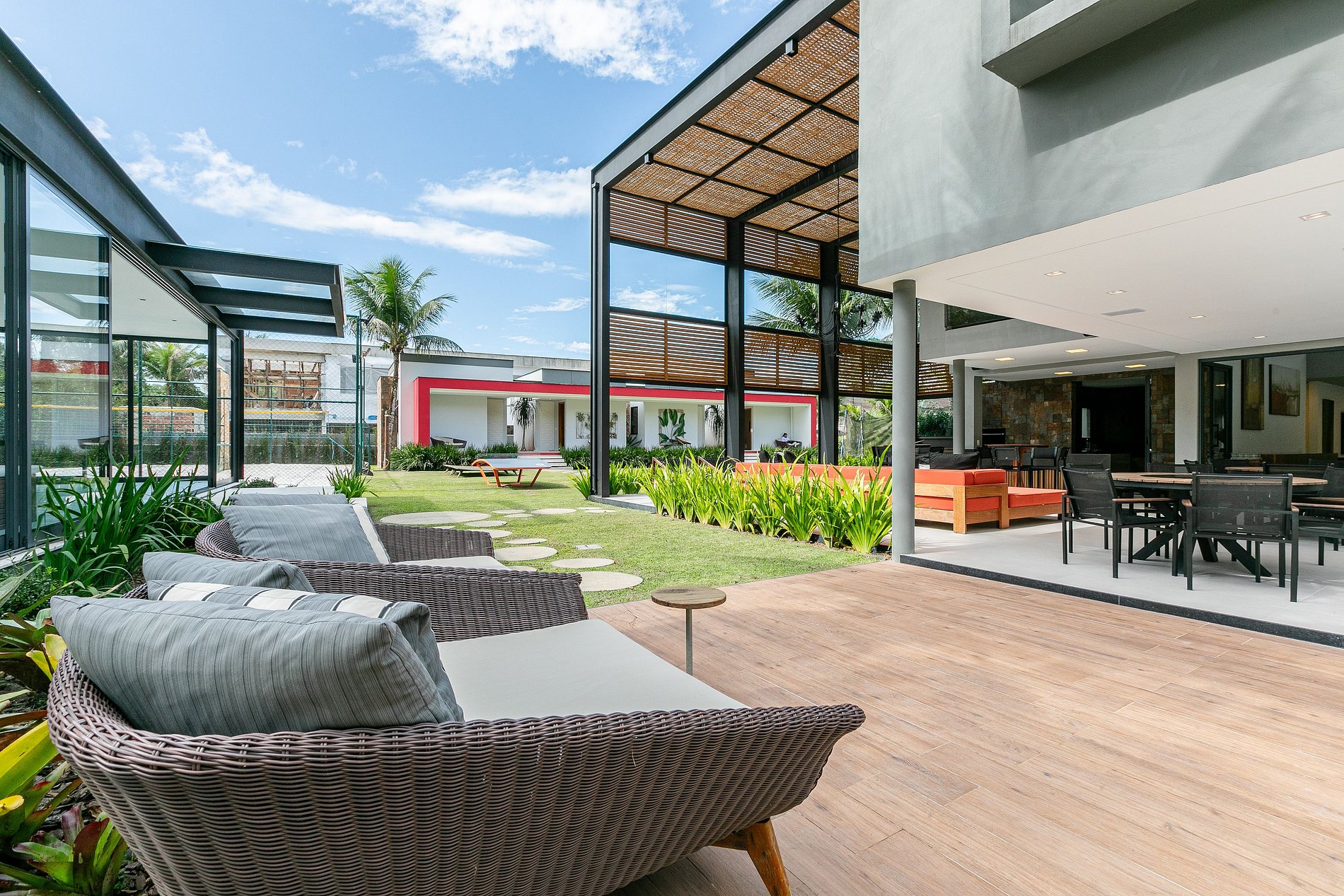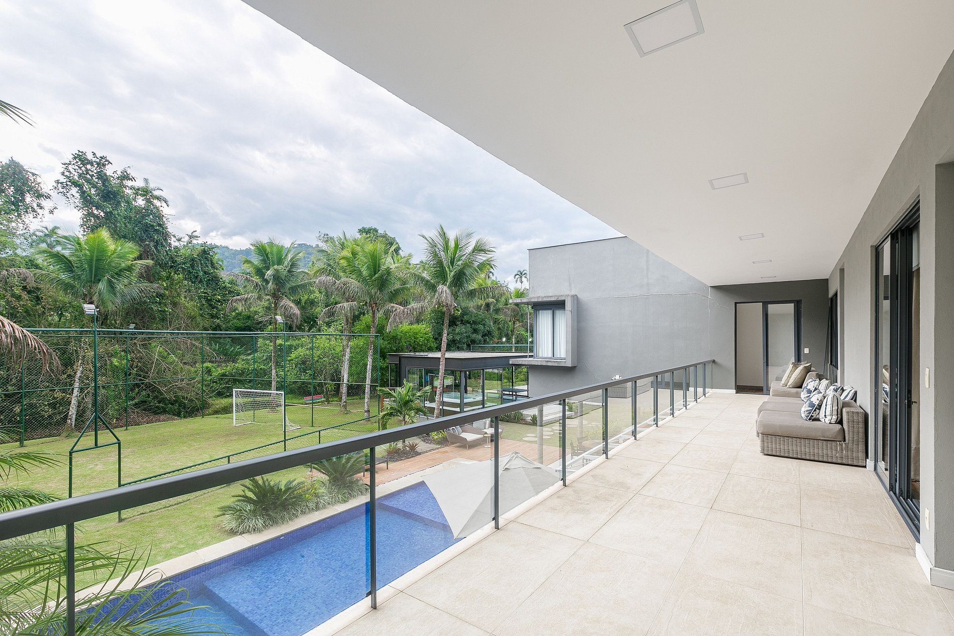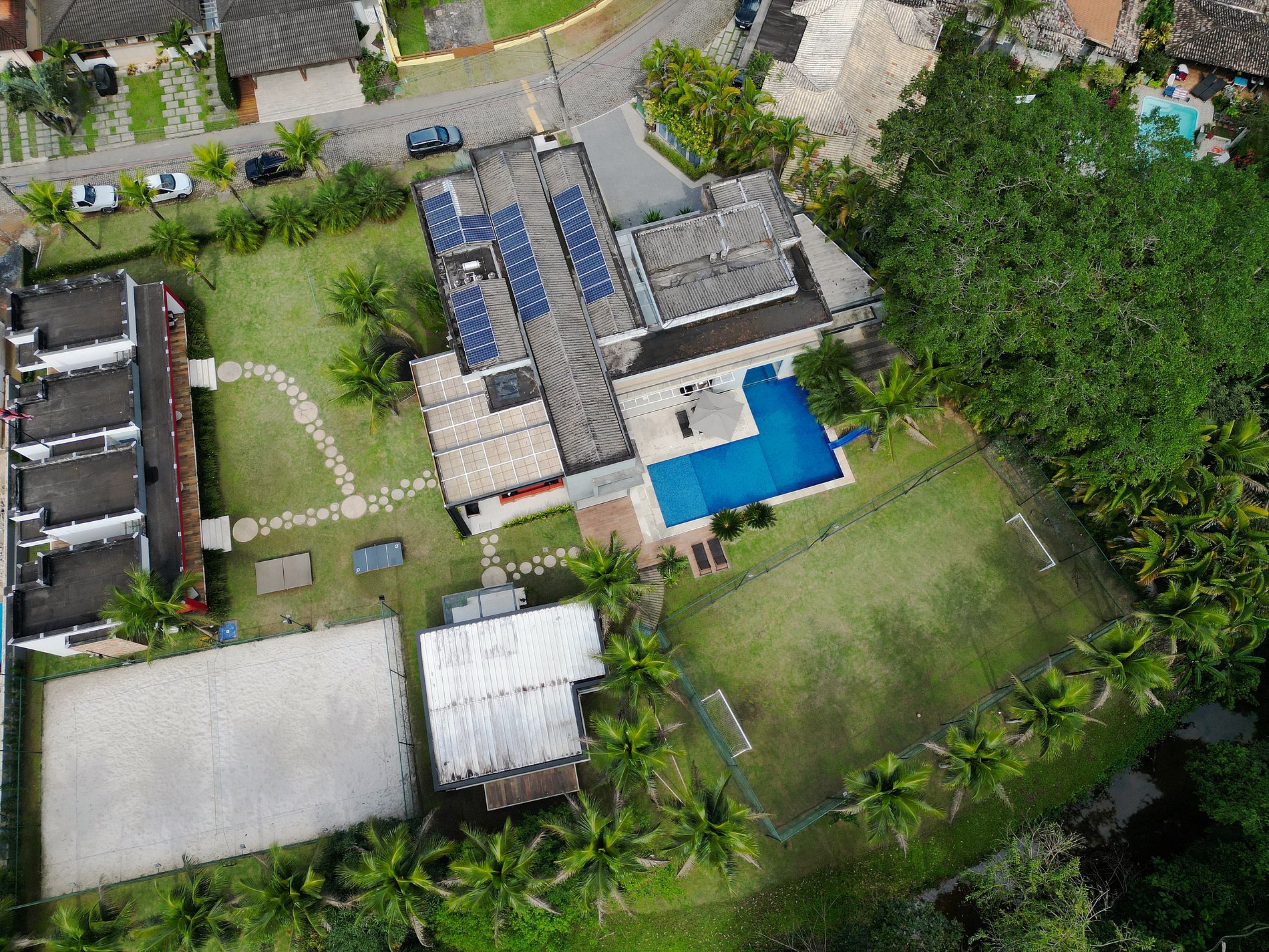 Step outside into the expansive backyard and be amazed by the numerous luxury amenities on offer. Relax by the sparkling swimming pool, savor a gourmet meal at the outdoor dining area, or challenge your friends and family to a game of soccer or volleyball on the well-manicured field. If relaxation is what you seek, the property features coconut trees with hammocks and an incredible indoor Jacuzzi in the room, providing the ultimate in relaxation and indulgence.