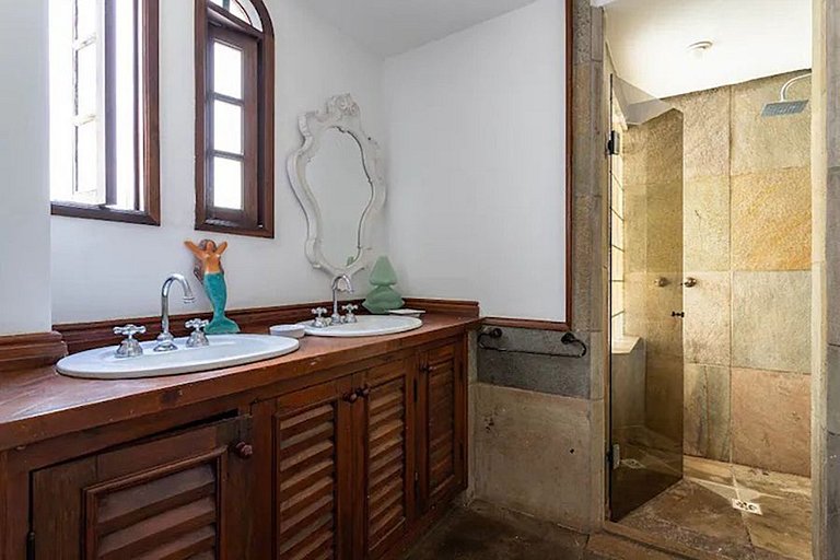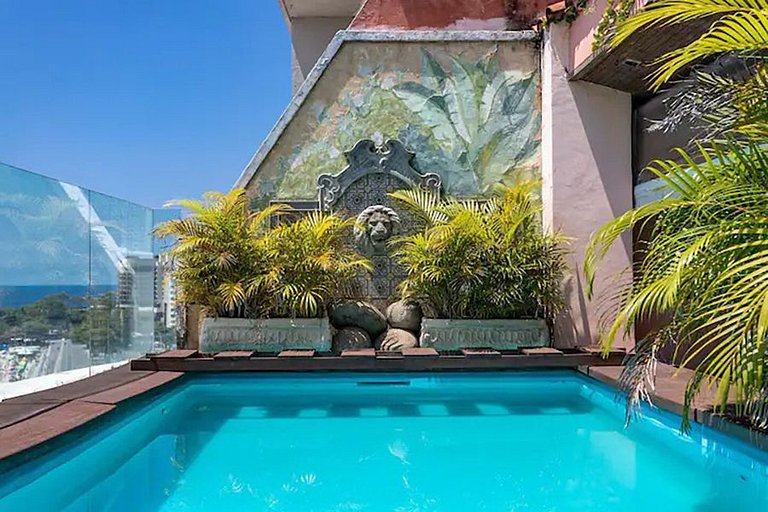 On the second floor, a secret garden provides an oasis of tranquility, with a manicured lawn, cabin, and a spectacular view, making it the ideal place to meditate, relax, and enjoy the sunrise or sunset in a private and peaceful environment. With a capacity of up to 6 people, this vacation rental property is the perfect choice for anyone seeking an exceptional stay in Copacabana, Rio de Janeiro.