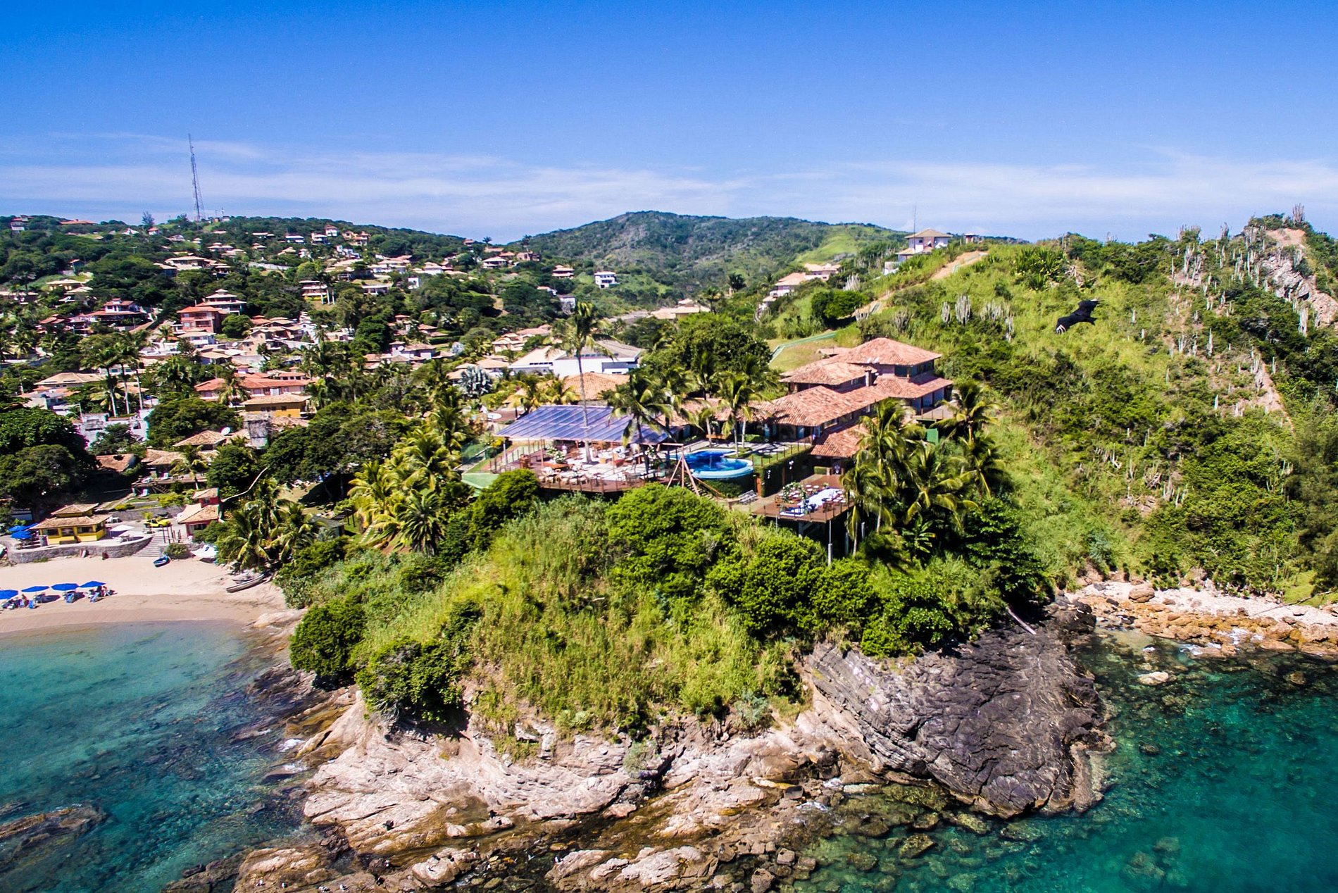 Imagine a luxury villa perched on top of a rock formation with stunning ocean views and breathtaking sunsets. This is the perfect description of the fabulous 5-bedroom mansion located in the Ferradurinha gated community.