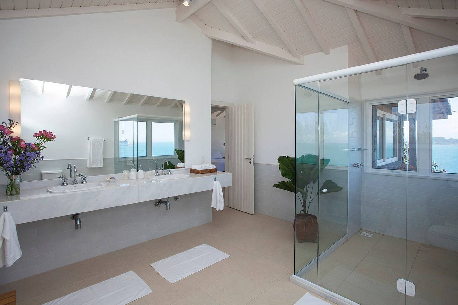 The living and dining rooms are intelligently decorated with tasteful art and high-quality, luxury furniture. But the highlight is the living room partially covered with an awning, and the glass walls that provide a complete panoramic view of the ocean and the area surrounding the land. Imagine yourself sitting there and enjoying all the natural beauty of the place.