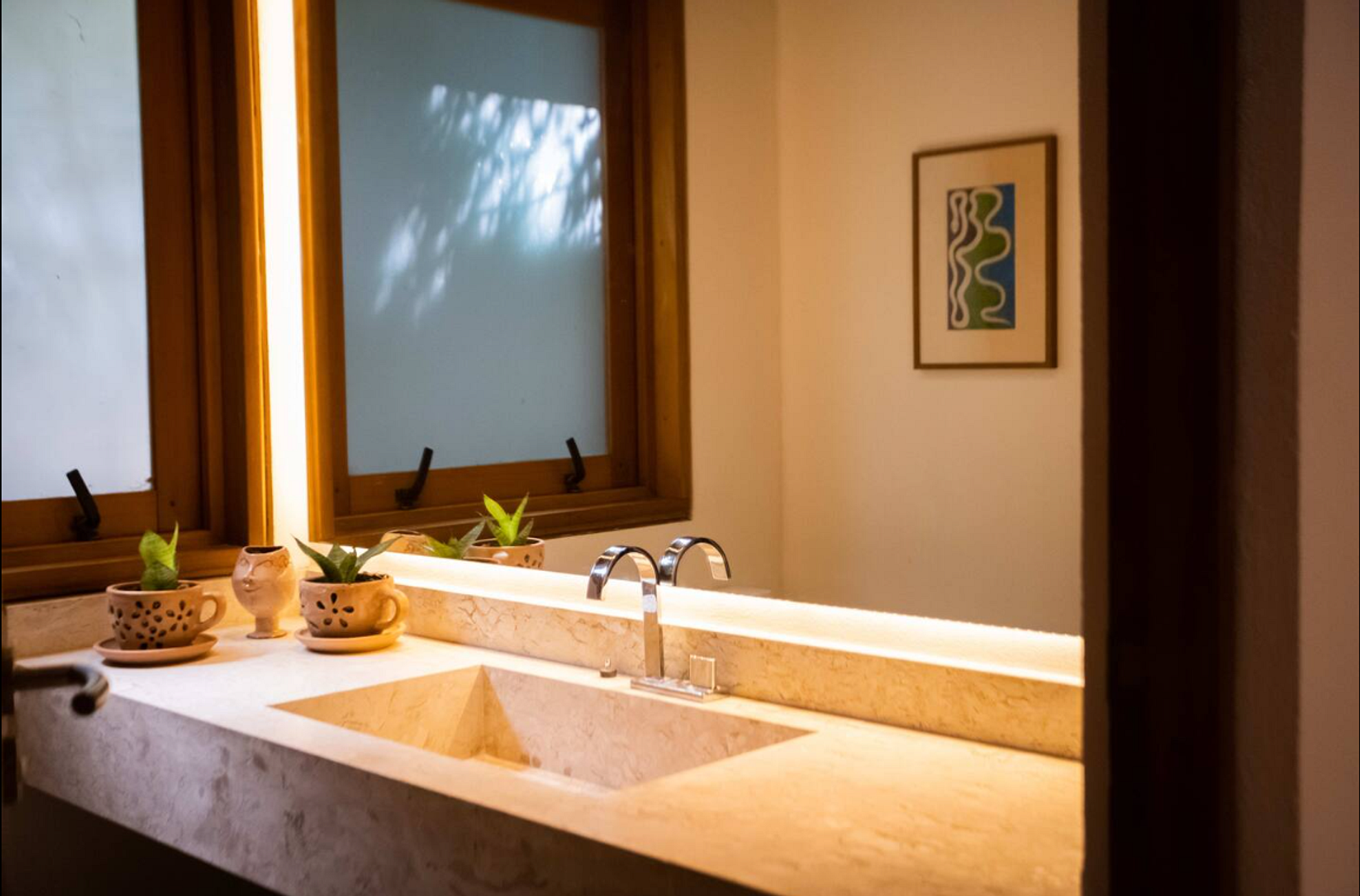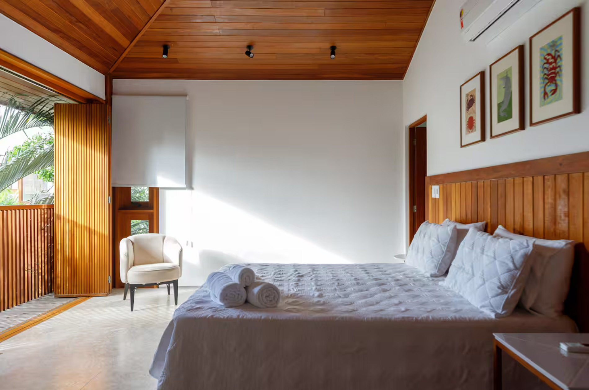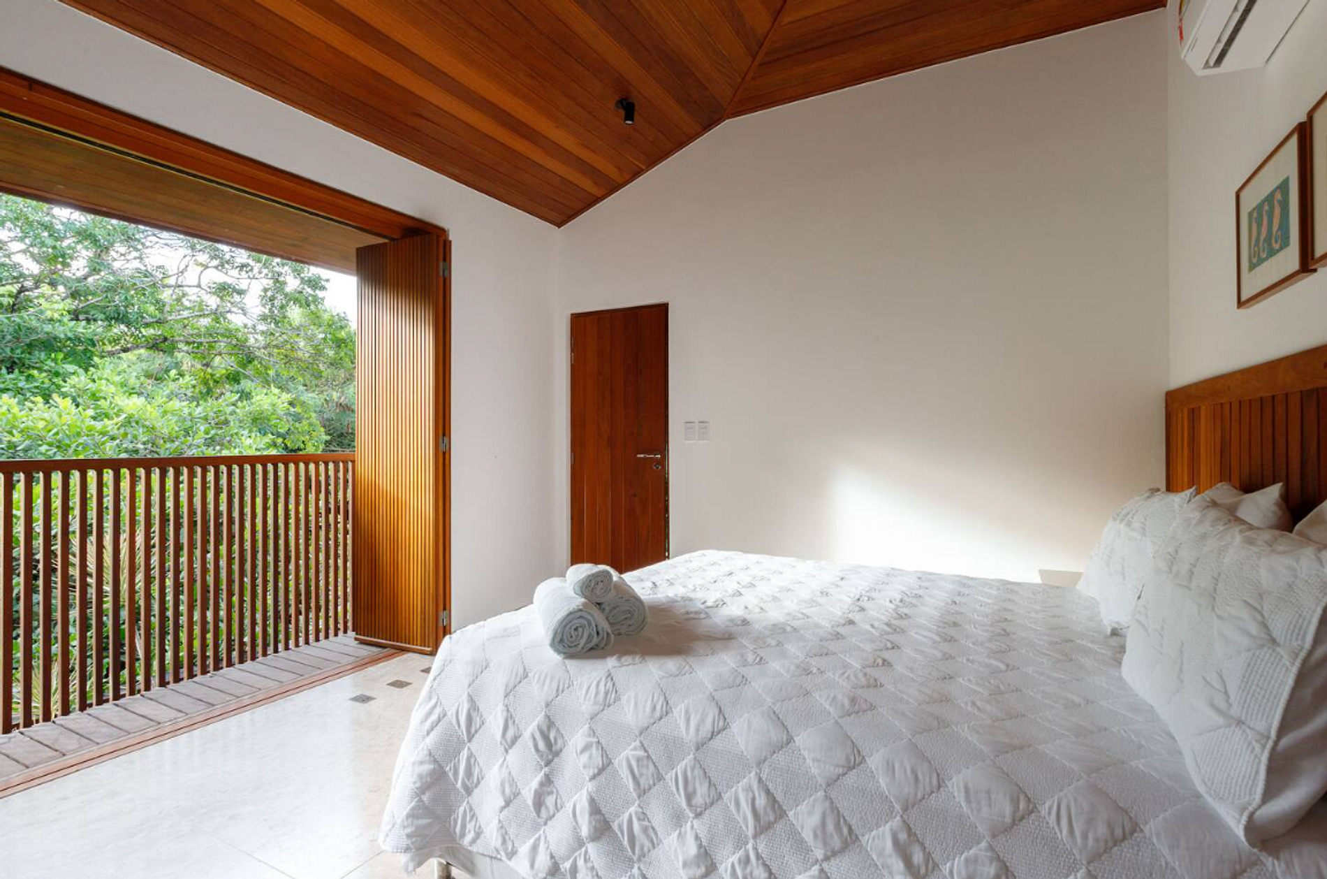 Located in the prestigious Enseada do Castelo condo, just 1 km from the lively Villa, you're near Tamar Project, local restaurants and the charming Church of St. Francis of Assisi. The house features a complete kitchen, smart TV, Wi-Fi, beer fridge, wine cellar, linens, and pool maintenance service. Enjoy beach access, sports courts, gym, kids' park, paddleboarding, kayaking, and total safety with 24h security.