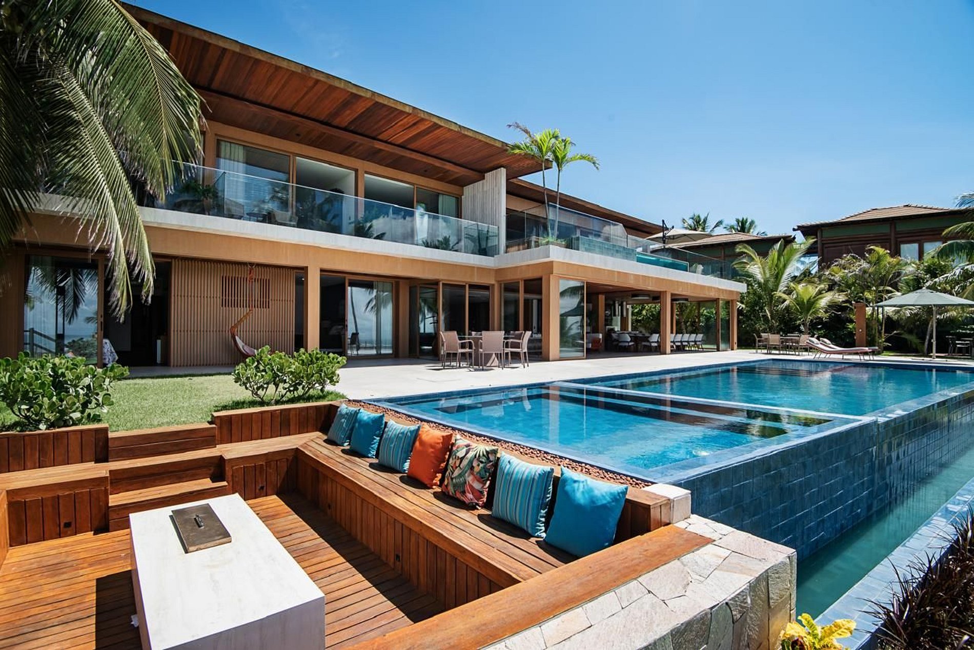Experience true seaside luxury in this stunning property set in the exclusive Porto das Baleias gated community, at the heart of Praia do Forte. Sitting on a 1,400 m² plot, this beachfront home offers breathtaking ocean views, refined design, and top-tier amenities, all within walking distance to the charming village and the famous Tivoli beach.