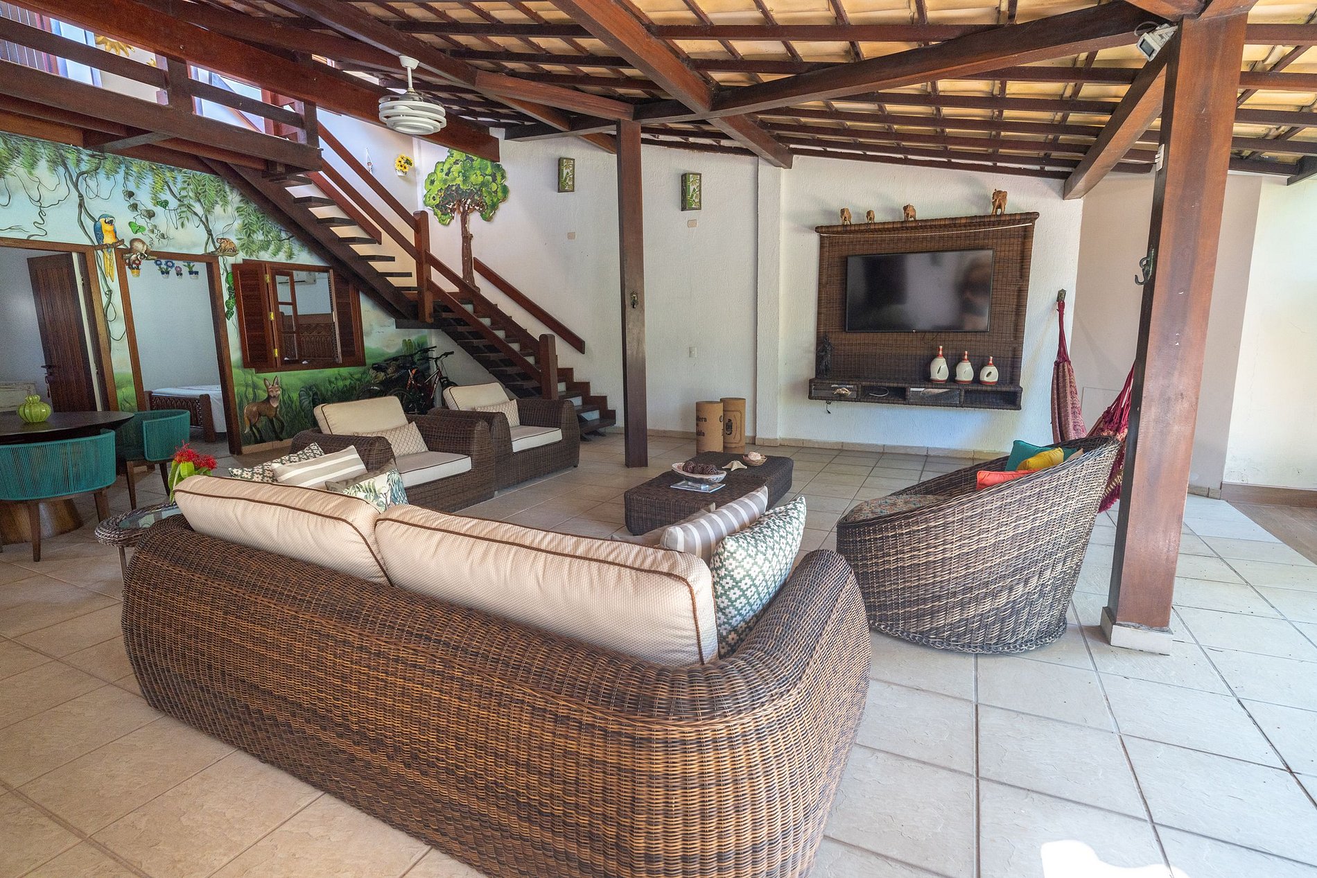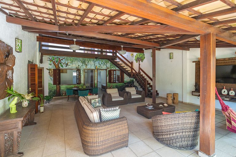 With a smart layout spread over two floors, the house comfortably accommodates a variety of guest profiles. There are seven well-distributed suites with Queen, King, double, and single beds, plus an additional room with a Queen bed. This versatility makes it ideal for large families, groups of friends, or even private events, ensuring maximum comfort and privacy.