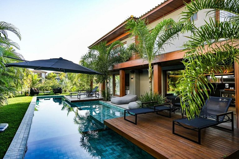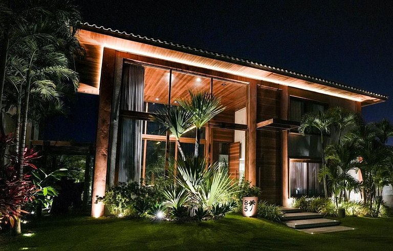 This stunning luxury villa is located in the most exclusive beachfront condominium of Praia do Forte. Just a 3-minute walk from the sand, the newly built home (2021) features elegant décor, modern architecture, and a fully equipped infrastructure designed for family comfort and relaxation.