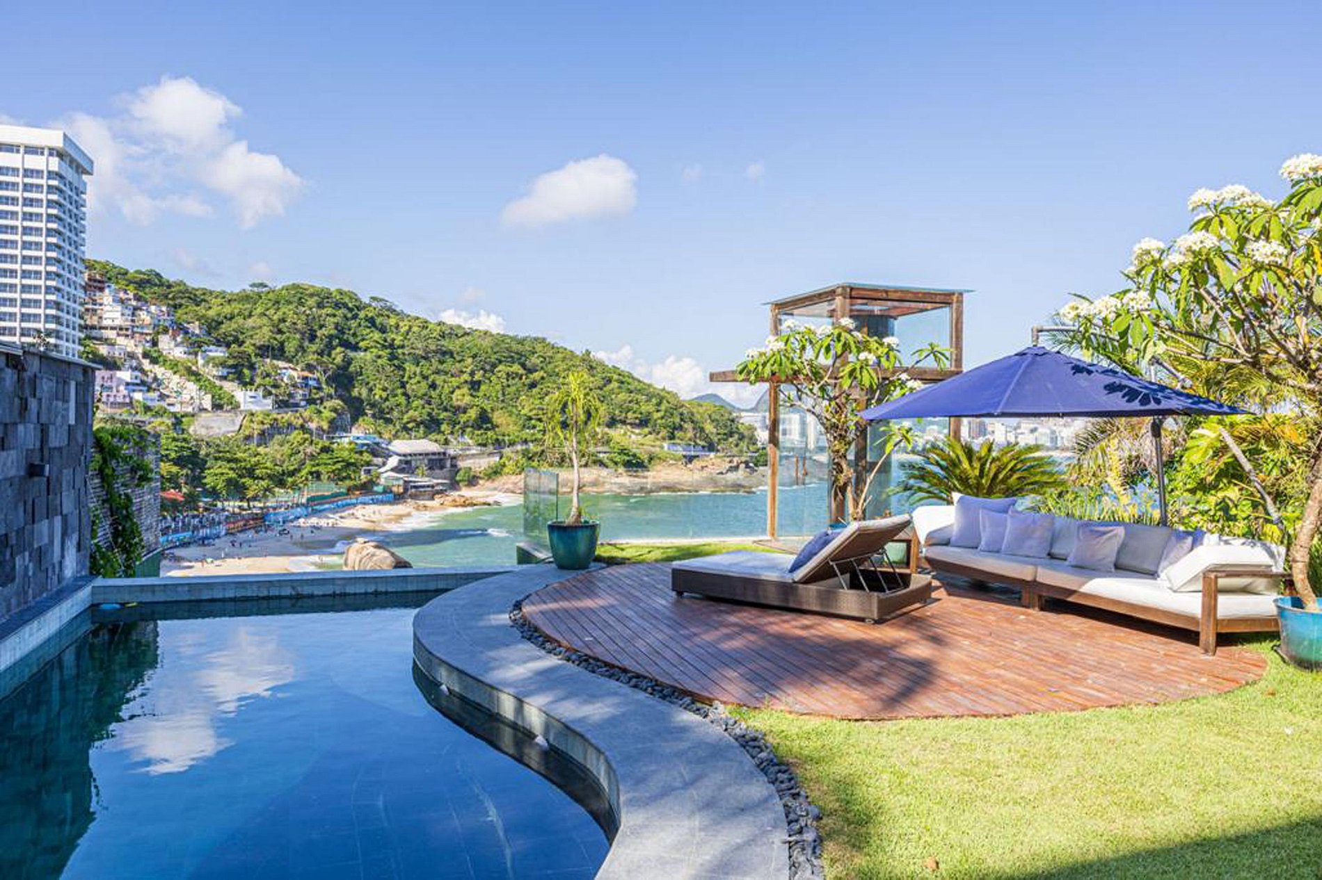 El tercer y último césped parece dirigirse directamente hacia el mar, terminando en las rocas de la costa de Leblon, con un jacuzzi al final.