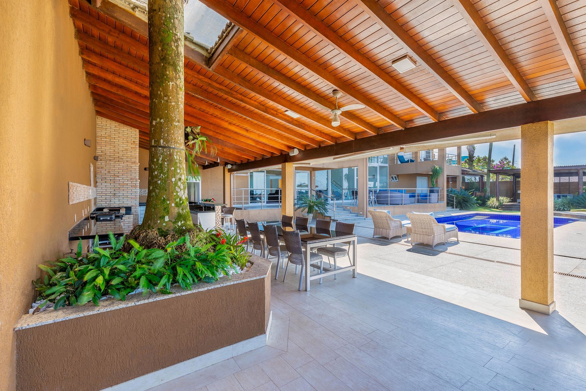 Ubicada en un exclusivo condominio en Guarujá, esta lujosa mansión irradia elegancia y sofisticación, con impresionantes vistas panorámicas de toda la ciudad y el océano.