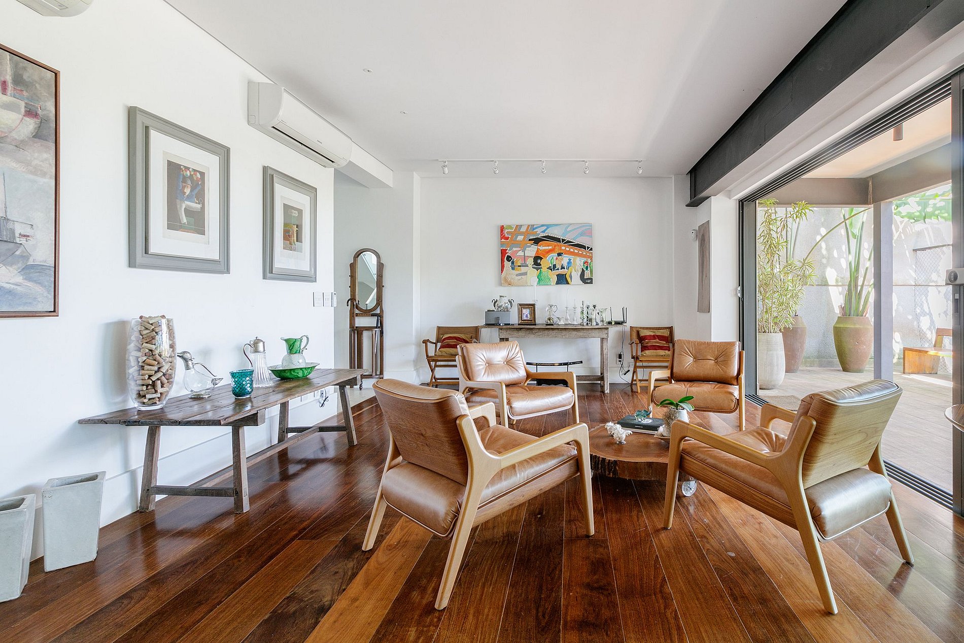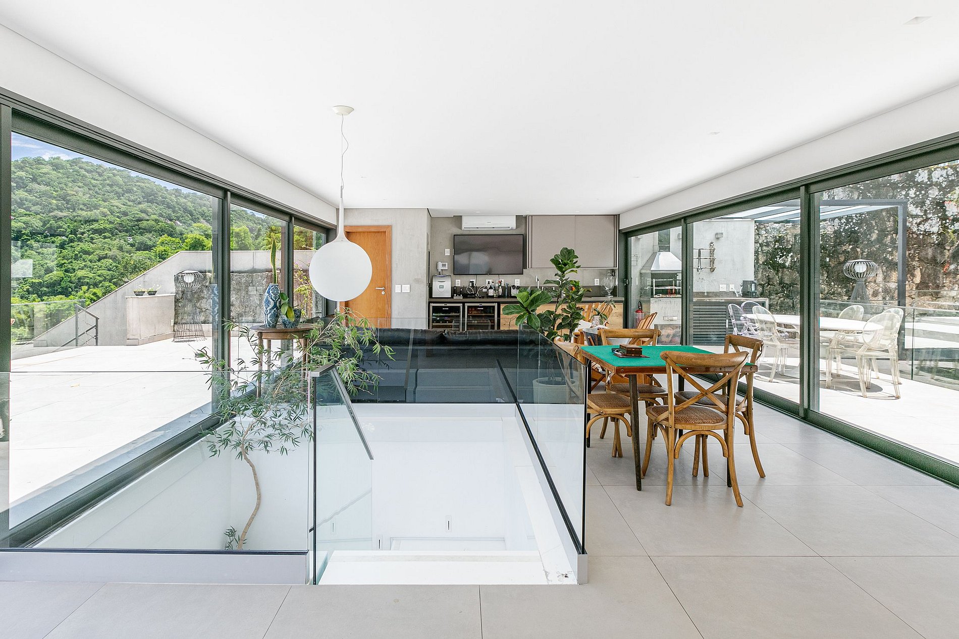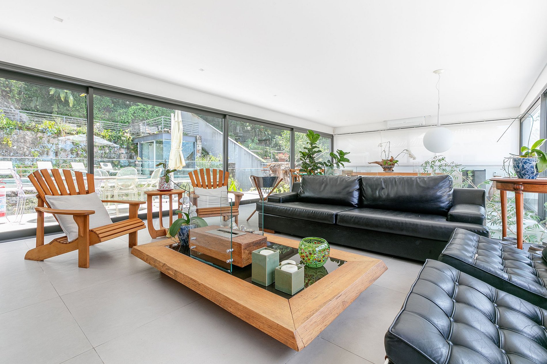 Gracias a sus puertas de cristal, el ambiente interno es muy aireado y con abundante luz. Su piso superior se abre a una encantadora terraza con piscina, asador y una vista privilegiada a la laguna Rodrigo de Freitas, el Cerro Corcovado, el Pan de Azúcar y el propio Jardín Botánico.
