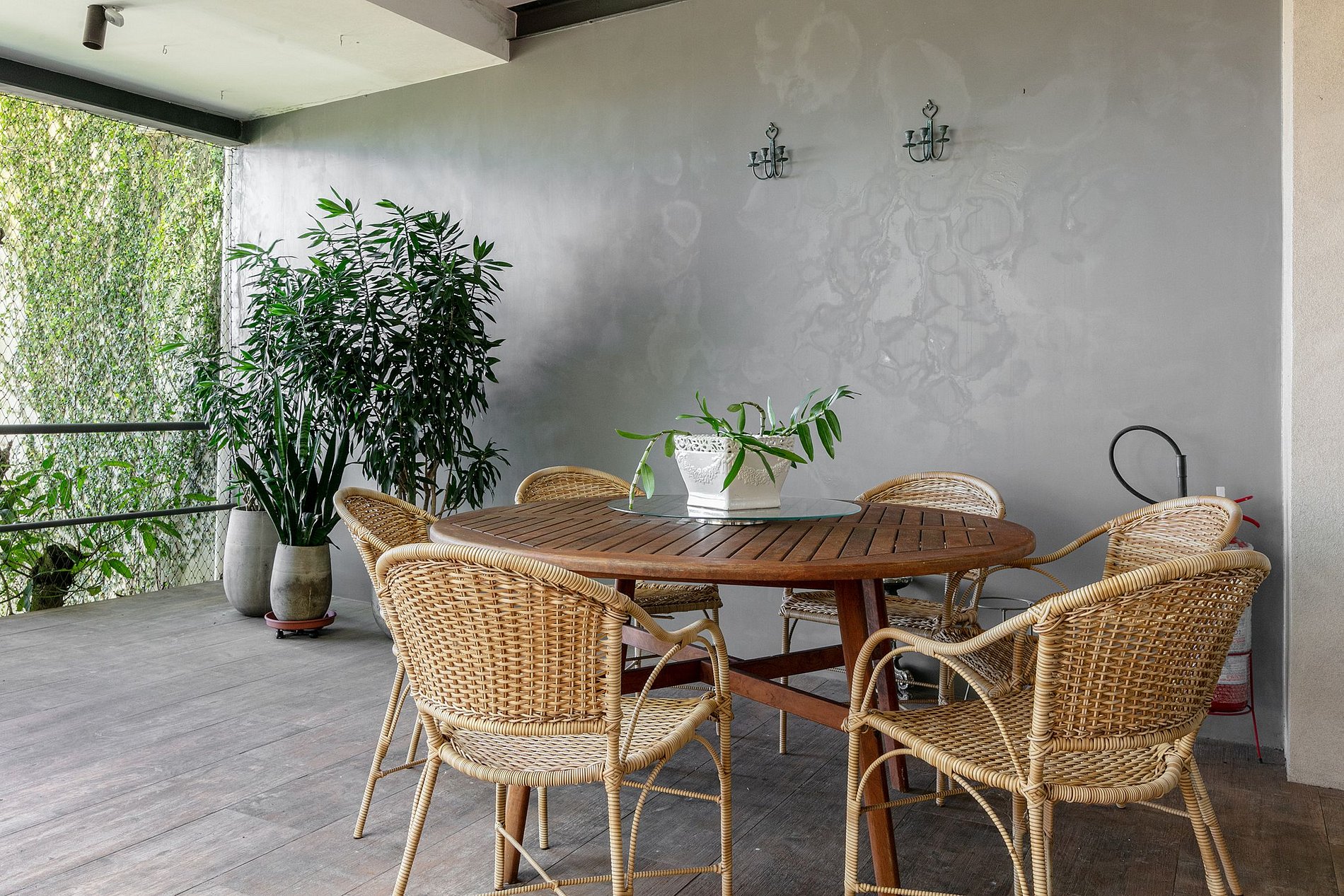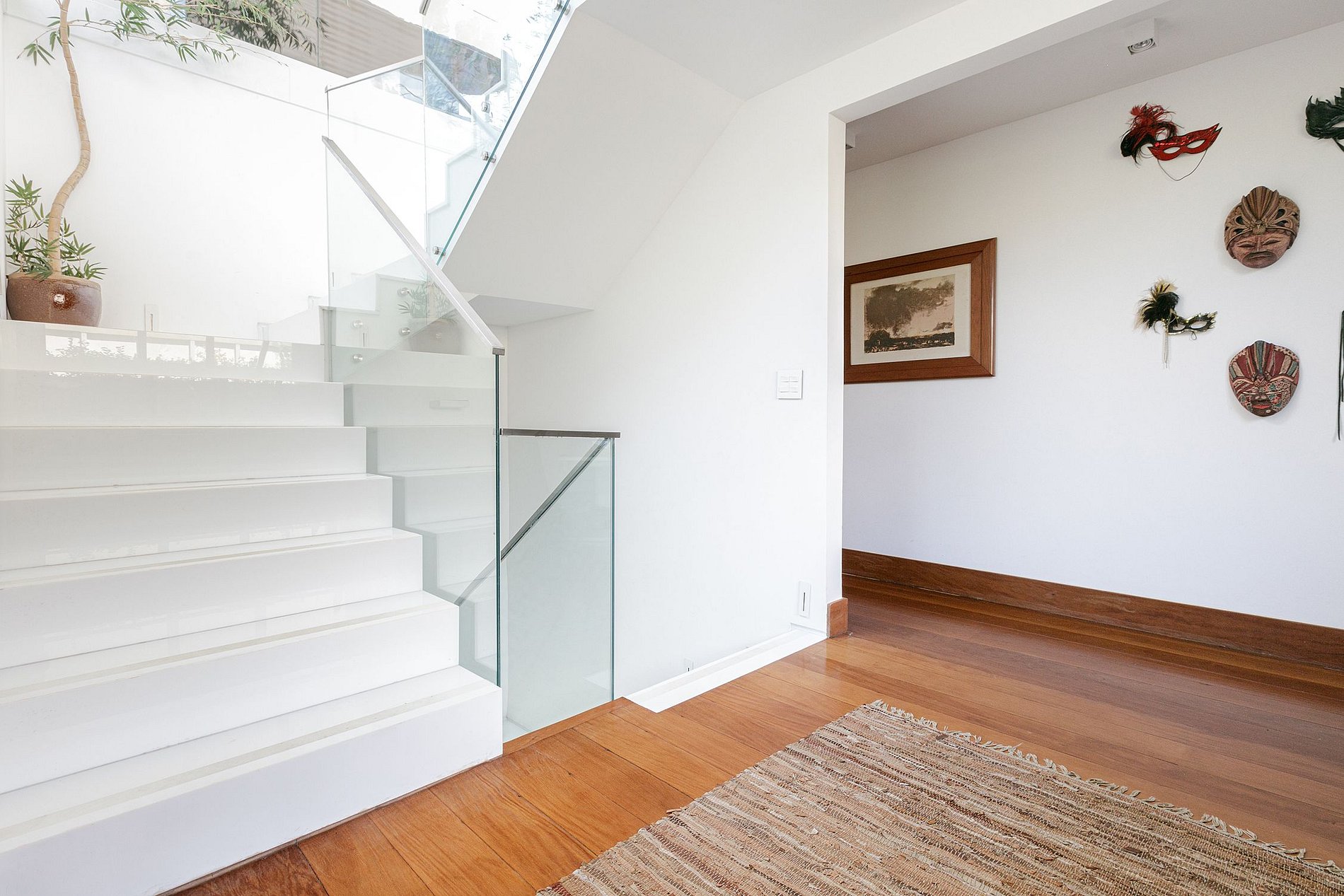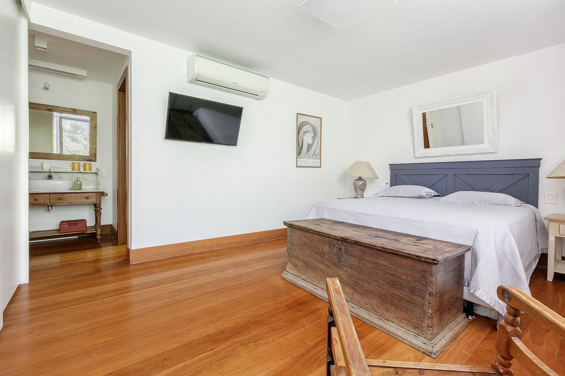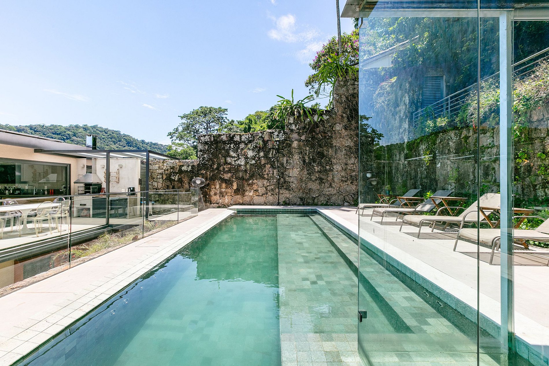 Jardim Botânico es uno de los barrios más encantadores y arbolados de Río de Janeiro. En lo alto, en una calle tranquila y apacible, con caseta de vigilancia y seguridad las 24 horas, se encuentra esta casona de tres pisos, decorada de manera que mezcla acabados contemporáneos con ligeros toques “vintage” que se integran perfectamente con la exuberante Tijuca. Bosque y huerto a tu lado.