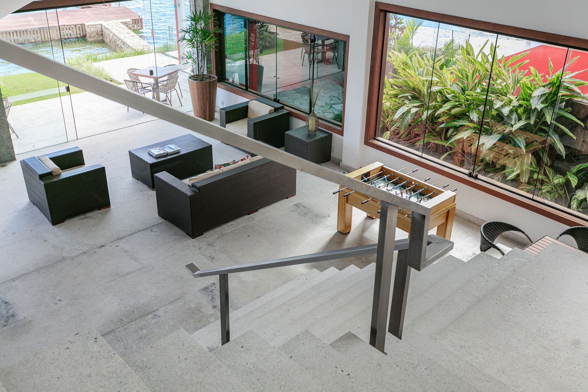 El ocio “interior” está asegurado por dos amplias y muy cómodas salas que incluyen: Home theater, videojuegos, zona infantil, mesa de billar, futbolín y también Ping Pong. La casa también tiene un gimnasio bien equipado a disposición de los huéspedes.