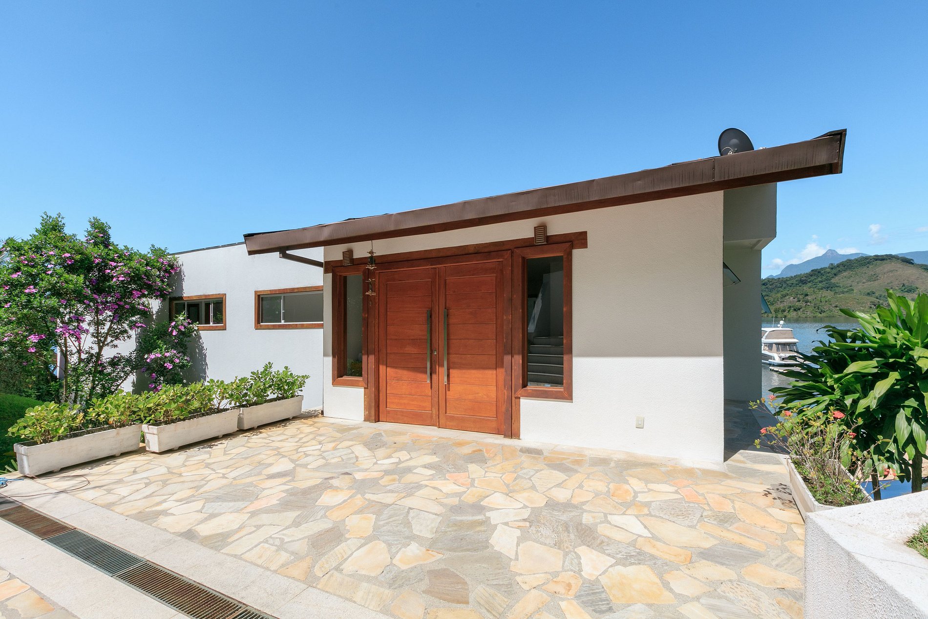 Esta hermosa mansión de 9 suites está ubicada en Angra dos Reis en el condominio Caieirinha, cerca de Frade y Fasano. Un condominio muy reconocido y exclusivo con 19 casas, con varias celebridades como Ronaldo the Phenomenon, Xuxa y el entrenador Parreiras.