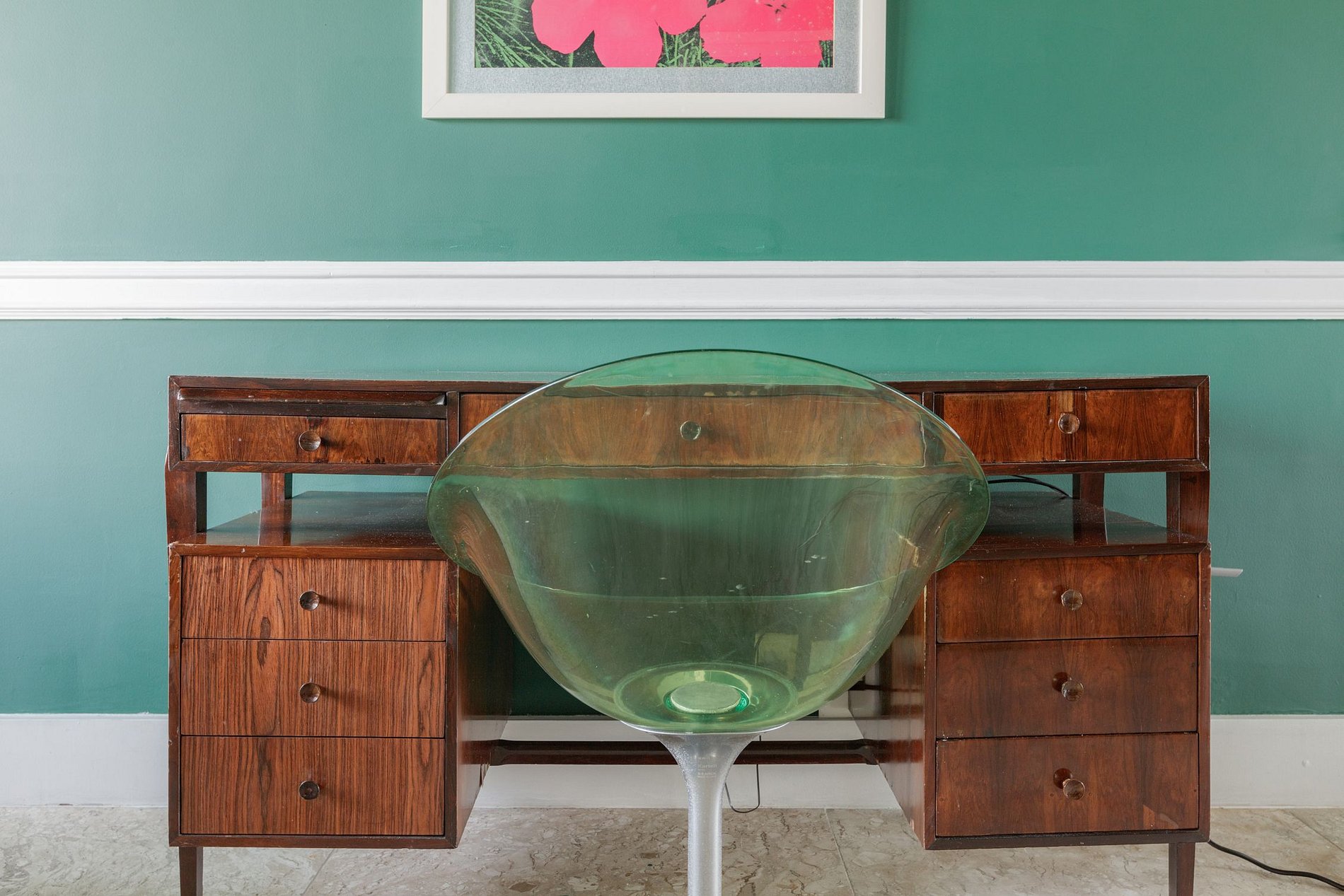 Pero aquí no solo brilla la naturaleza, decorado por Phillipe Starck y Le Corbusier, el penthouse de dos pisos y 950m2 tiene sus paredes cubiertas con vibrantes obras de arte contemporáneo.