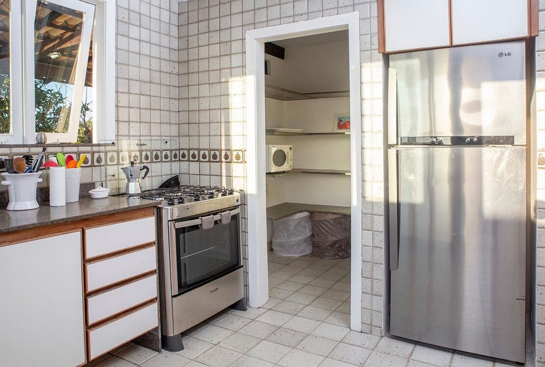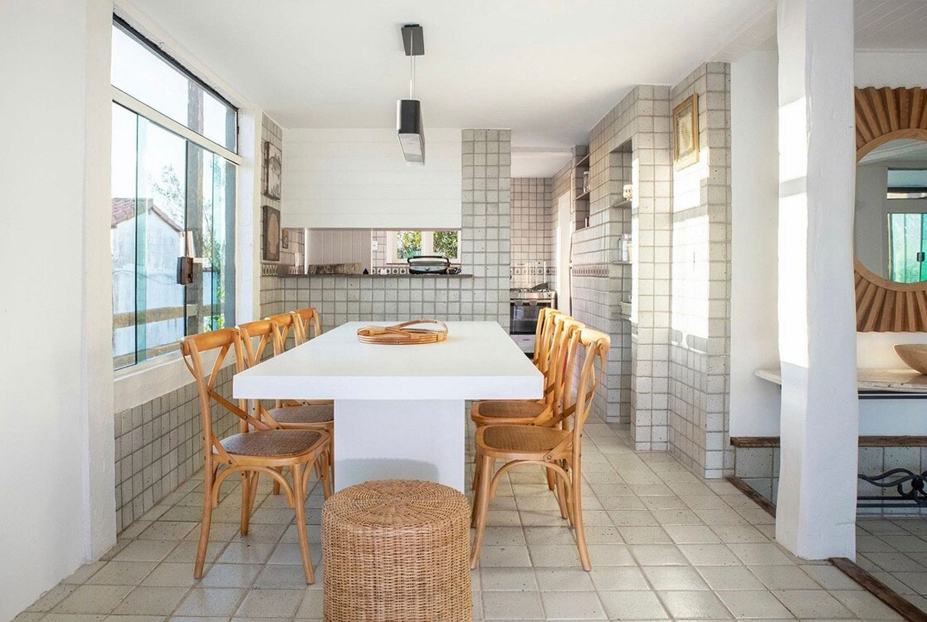 Con una decoración arquitectónica al mejor estilo mediterráneo/tropical, esta casa de cinco suites dobles (todas con vistas al mar) y un largo deck que parece flotar sobre el spa, integra a la perfección sus zonas sociales y de ocio: comedor a la zona de barbacoa gourmet. , sala de fiestas a la sala de TV de 55”, de la piscina al sauna.
