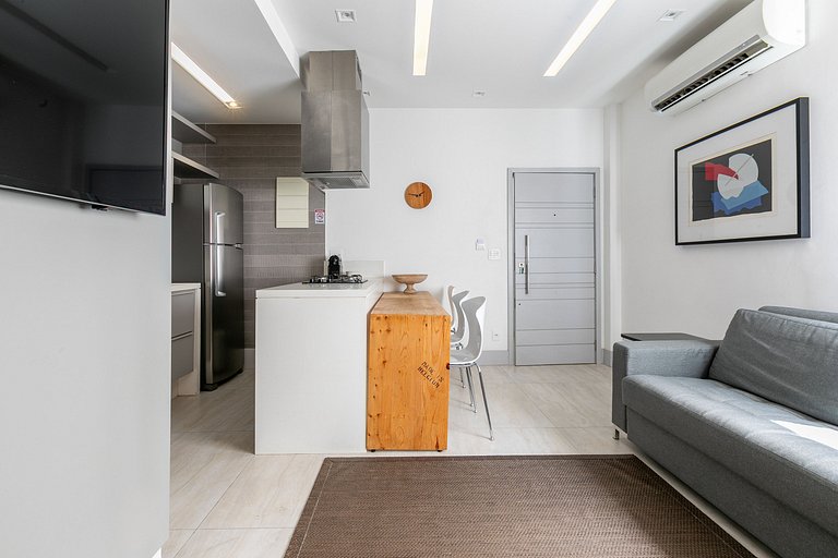 Un apartamento muy moderno y nuevo, con electrodomésticos y muebles finos, bien decorado y limpio. Muy bien ubicado a sólo 1 cuadra de la playa de Ipanema en el puesto 10.