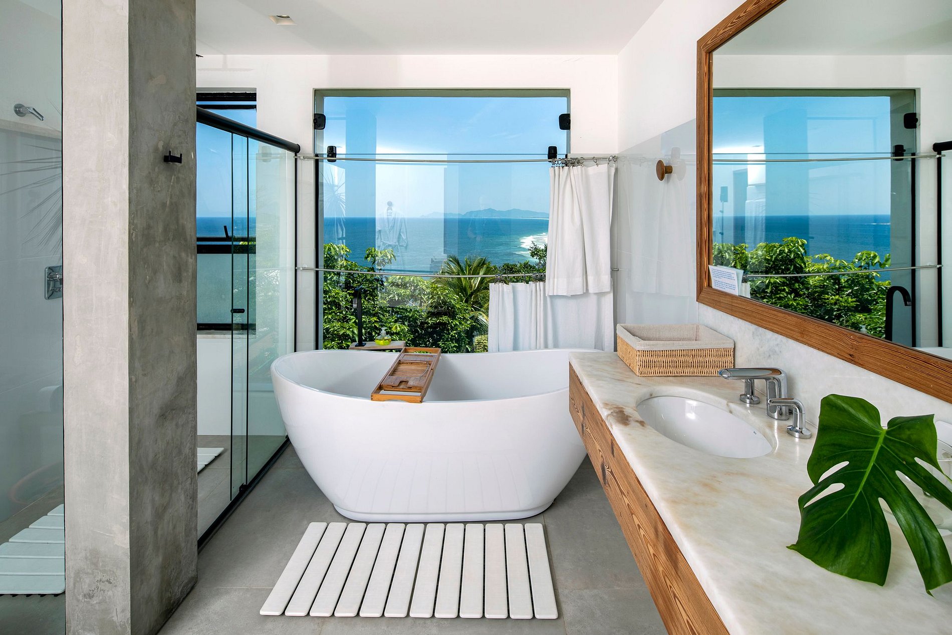 Hay tres excelentes suites con una cama king size con una vista impresionante sobre el mar. También hay una sala de apoyo con dos camas individuales cuyo estándar se puede convertir en una cama doble. Todas las habitaciones son completas, equipadas y cuentan con amenidades de alta gama como almohadas Zissou, sábanas de hilo de bambú, batas y toallas de algodón egipcio, cortinas de lino, TV con canales por cable y Netflix, y vistas inigualables a las Islas Tijuca y Cagarras.