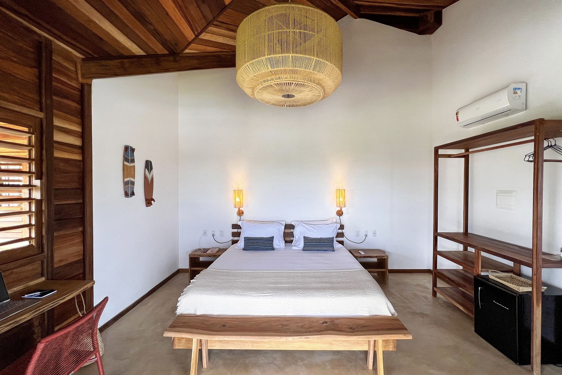 La propiedad cuenta con 8 suites y 2 bungalows exclusivos, todos equipados para garantizar la máxima comodidad. Las suites ofrecen camas king size de alta calidad, aire acondicionado, ventiladores, cortinas opacas, minibar y Wi-Fi de alta velocidad, ideal para quienes necesitan equilibrar el trabajo remoto con momentos de ocio. Las suites se dividen en dos tipos: