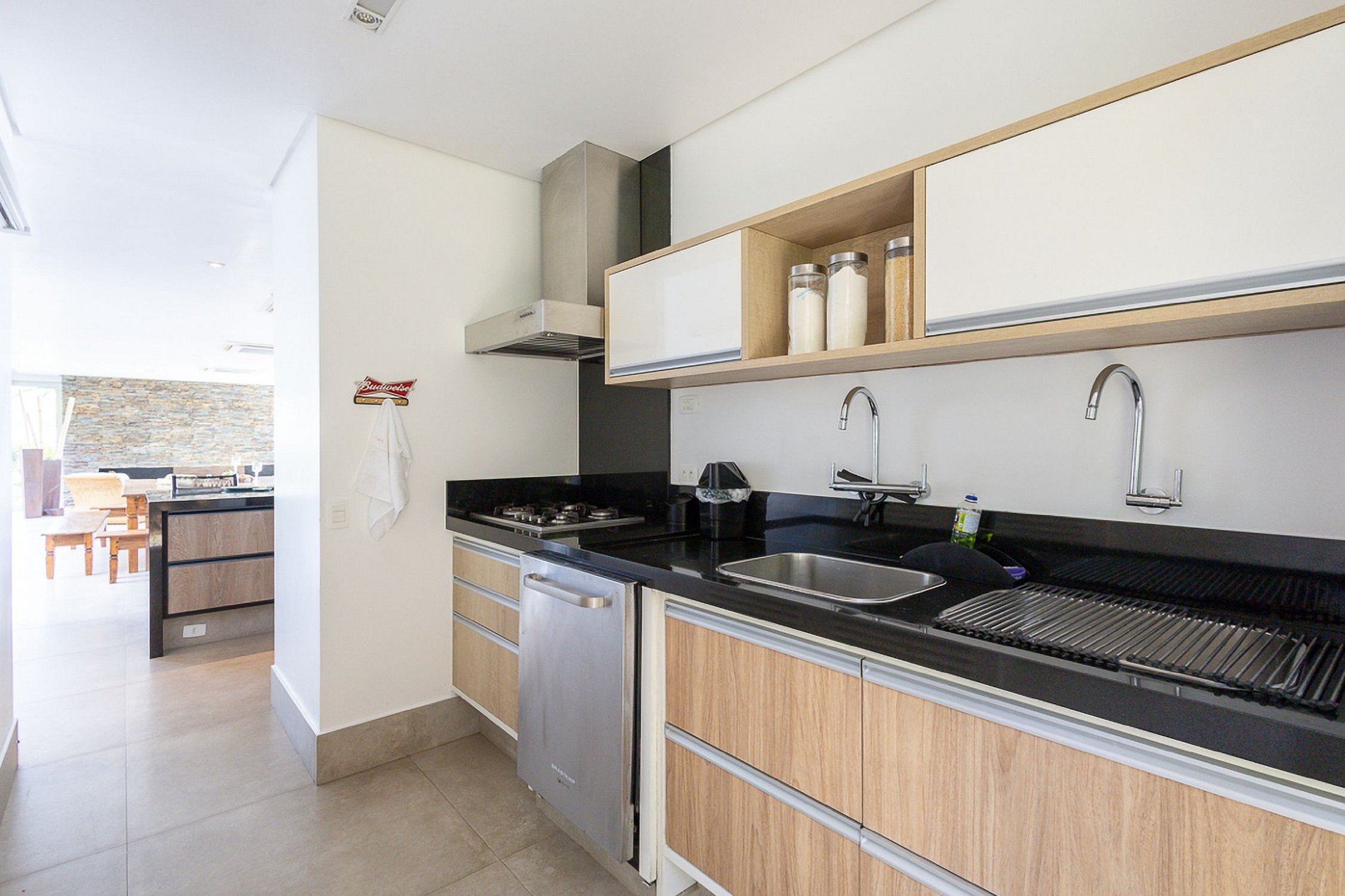 Espacio Gourmet e Integración de Ocio: El espacio gourmet es uno de los grandes diferenciales de la casa. Equipado con parrilla, horno de leña, máquina de hielo y enfriador de cerveza con temperaturas de hasta -5 grados, está estratégicamente posicionado en el centro de la casa, integrando el área social con el espacio de ocio. Además, cuenta con una estufa industrial, ideal para chefs y amantes de la cocina que deseen crear platos únicos para momentos especiales.